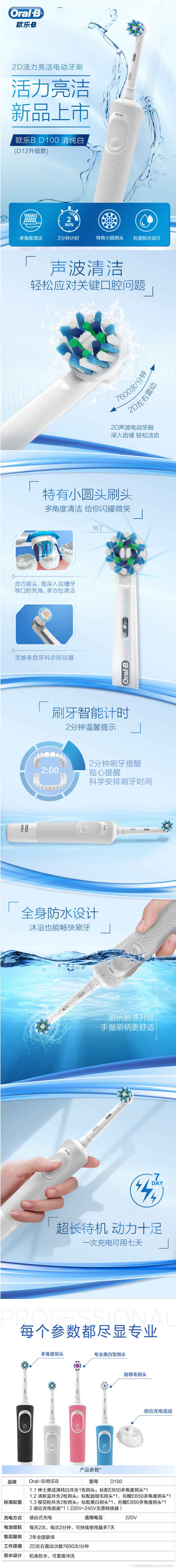 商品名称:欧乐B D100 电动牙刷活力亮洁 清纯白(含刷头*1) 单位:套