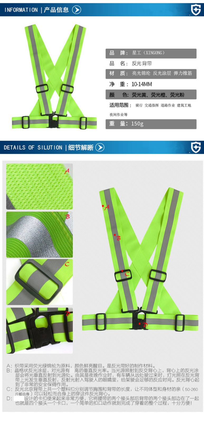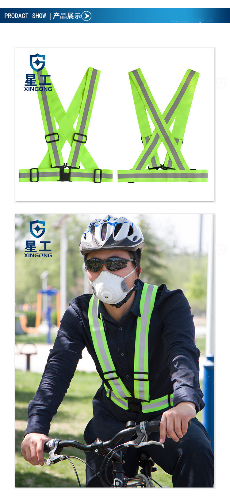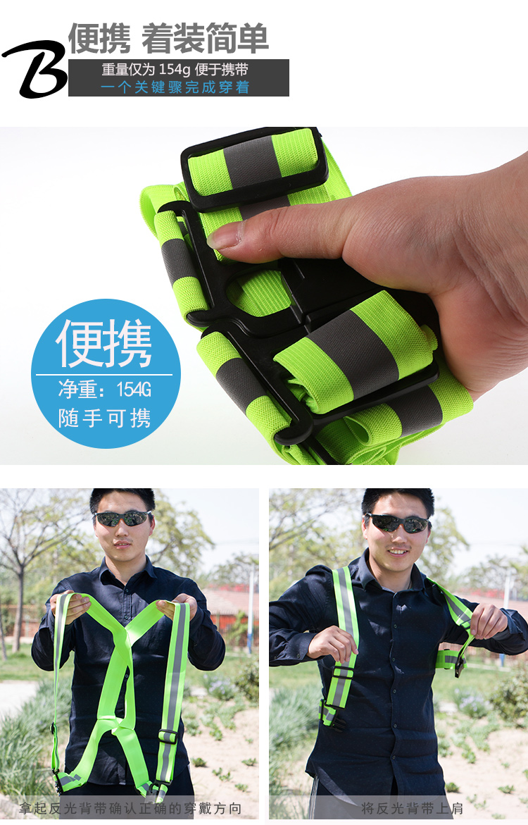 商品名称:星工(XINGGONG)反光背带 松紧反光带弹力反光衣骑行夜跑反光马甲 1件 3件起订