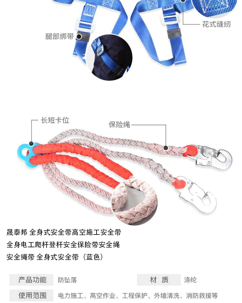 商品名称:晟泰邦 全身式安全带高空施工安全带全身电工爬杆登杆安全保险带安全绳安全绳带 全身式安全带(蓝色)