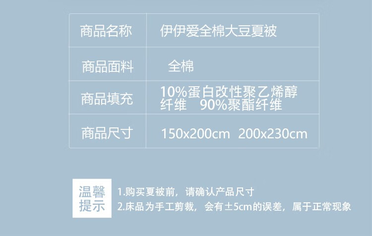 商品名称:伊伊爱 BZ0LFS2201014全棉格子系列大豆夏被200*230cm(单位:条)