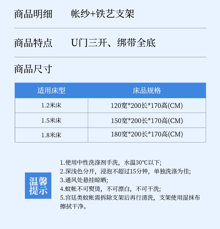 商品名称:伊伊爱 WZ0WBD2200005新款海浪系列简约坐床式蚊帐120*200*170cm(单位:顶)