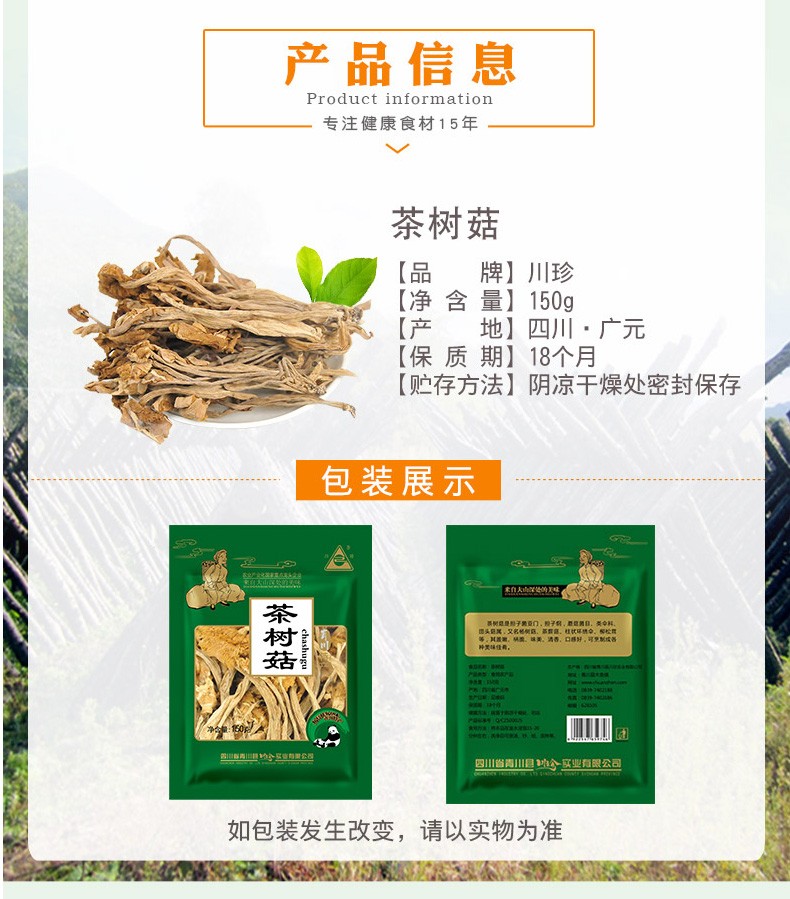 商品名称:川珍 茶树菇南北干货煲汤材料山珍土特产四川食用菌菇 茶树菇 150克