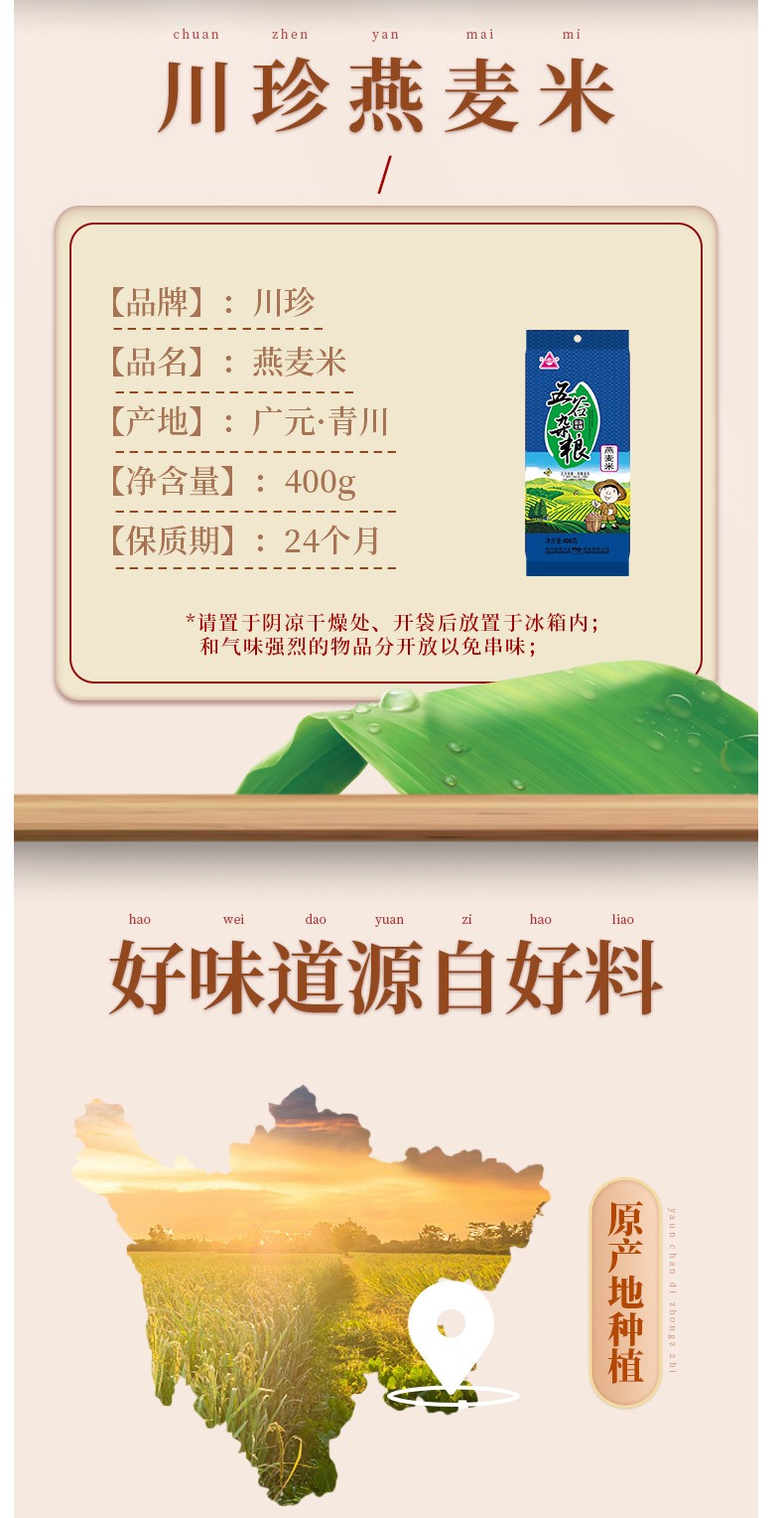 商品名称:川珍 燕麦米麦仁五谷杂粮粗粮袋装 大米 粥米伴侣 燕麦米400克袋装