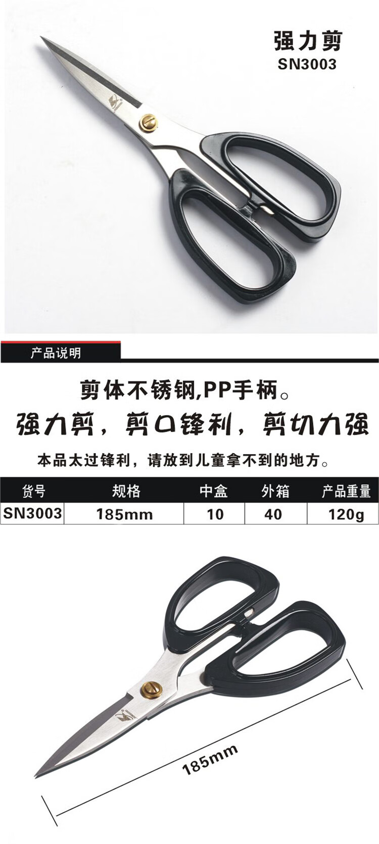 商品名称:卡夫威尔 强力剪刀 办公家用不锈钢剪刀 SN3003 单位:把 10把起订