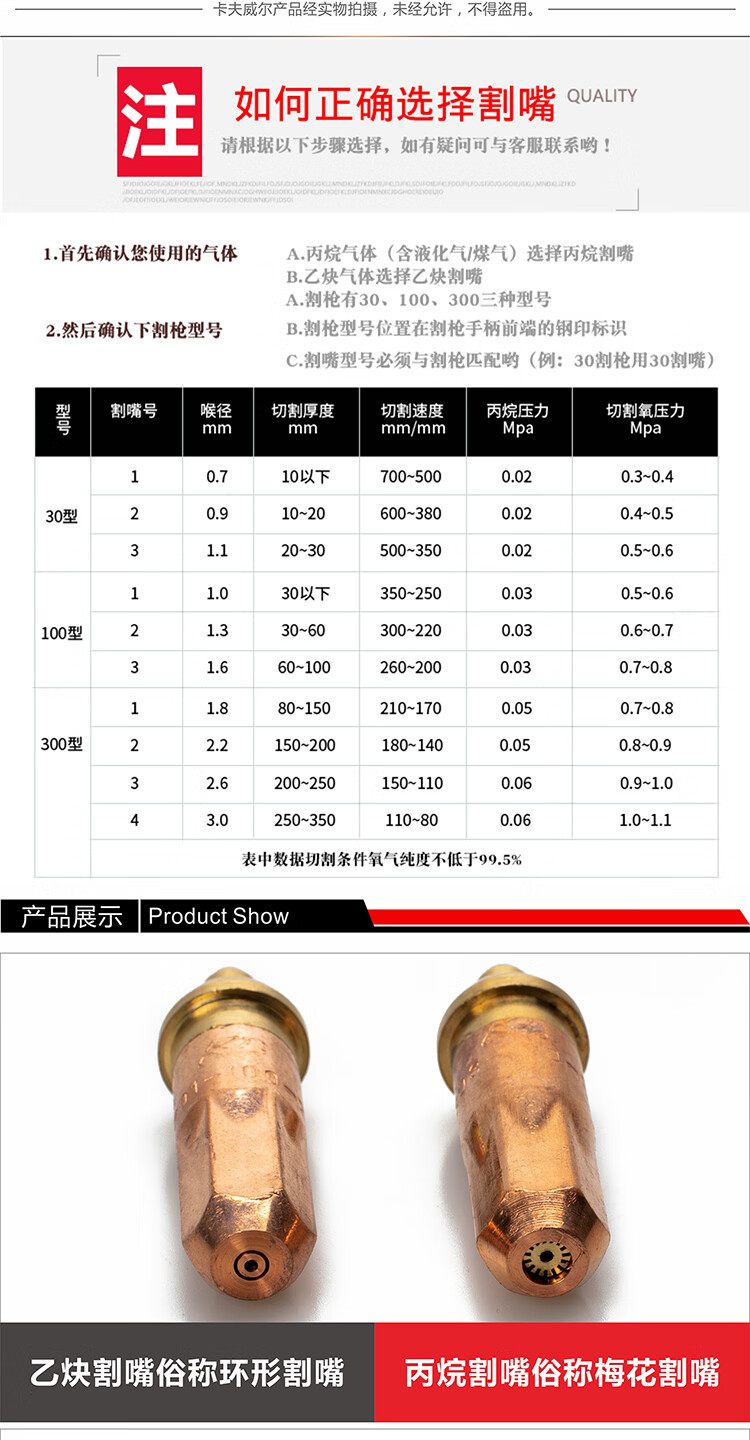 商品名称:卡夫威尔 5PC精品套式丙烷割嘴 30型2号 HJ0014C 单位:组 3组起订