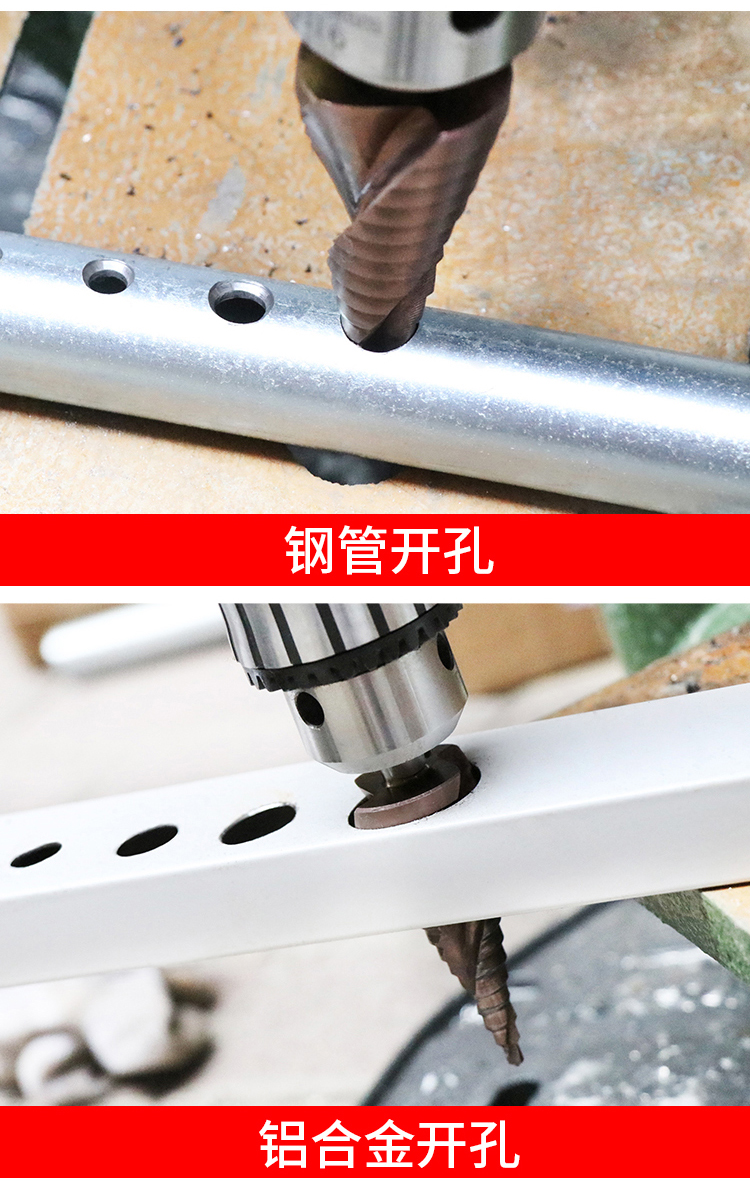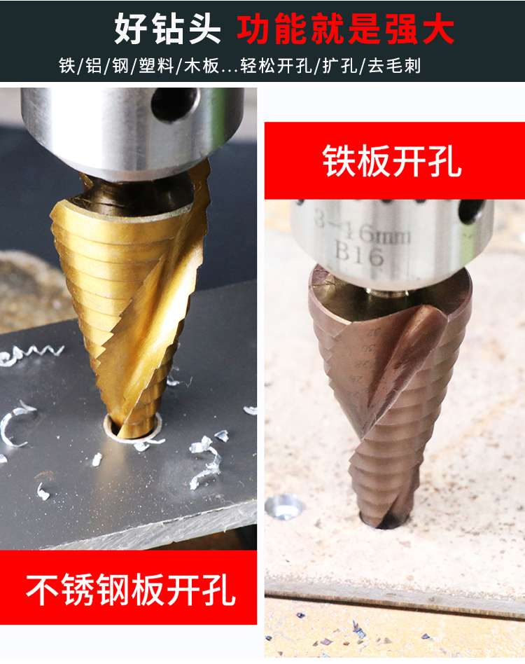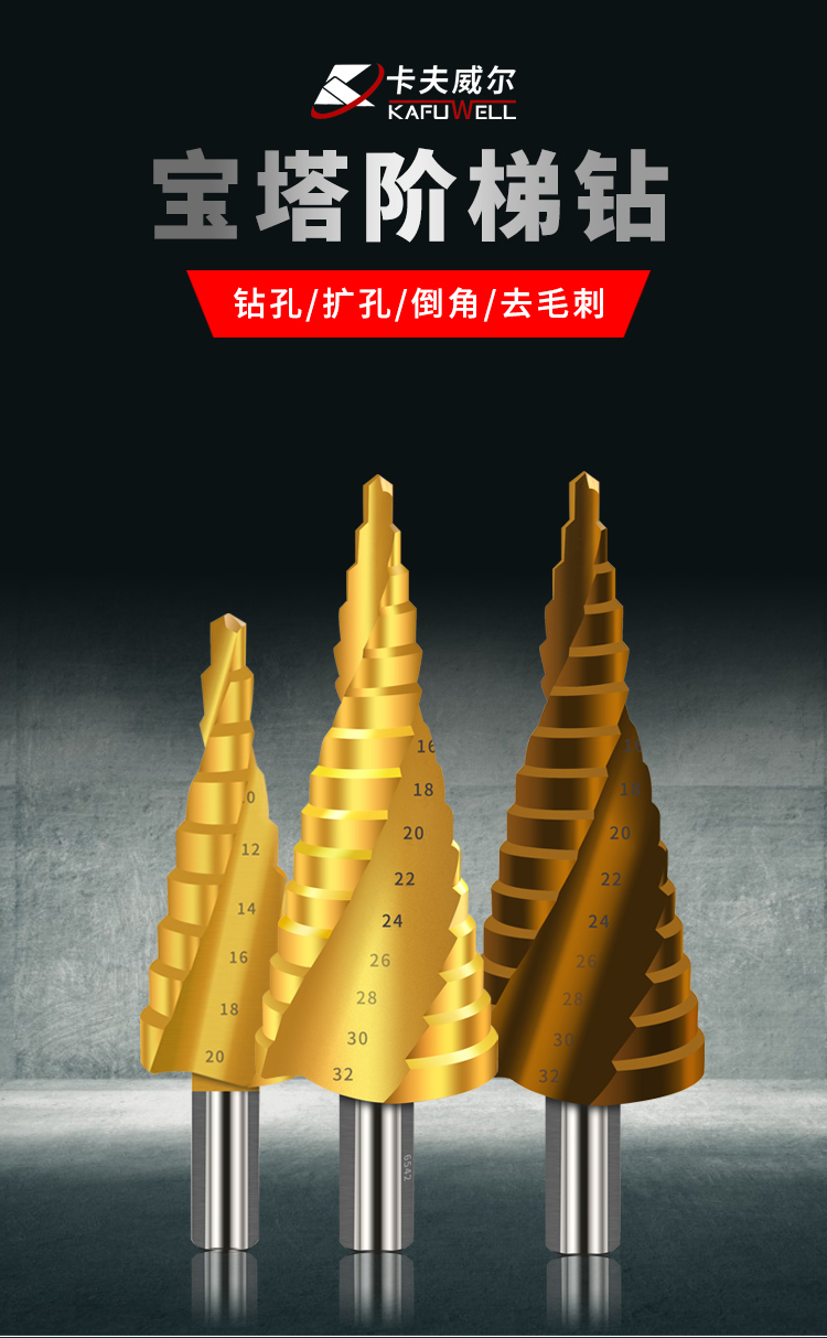 卡夫威尔 多功能宝塔钻头阶梯钻锥形金属开孔器钻孔扩孔打孔器6542镀钛 4-20mm 螺旋槽 AI3507 单位:个 3个起订