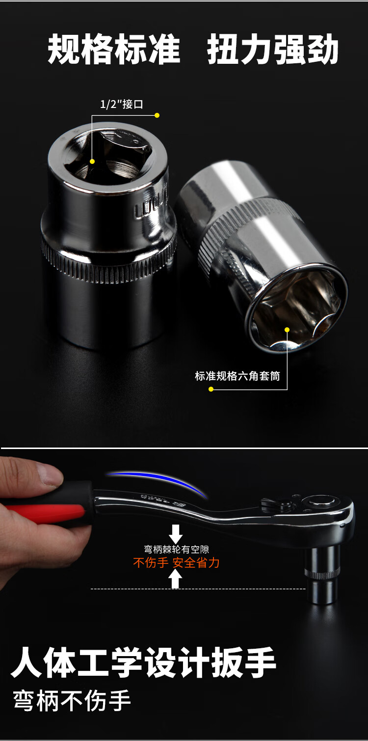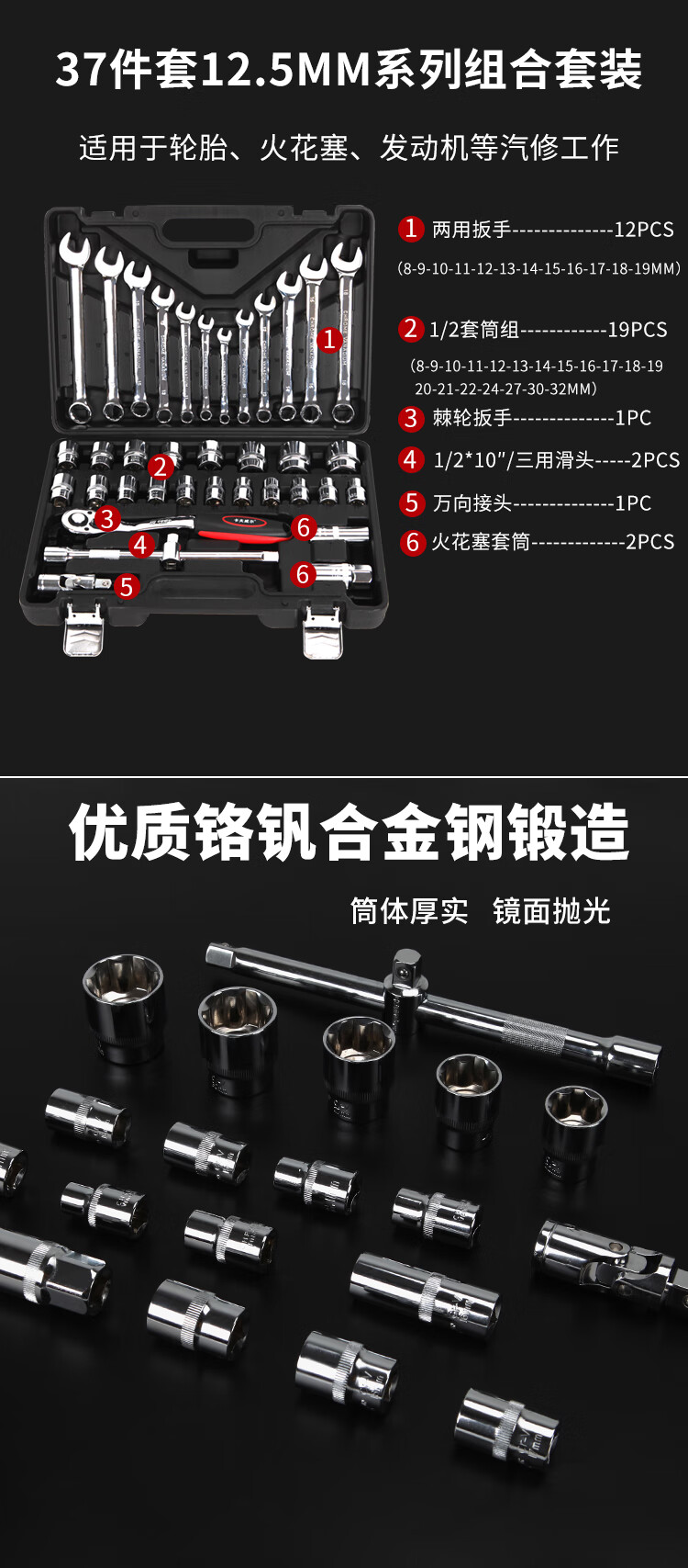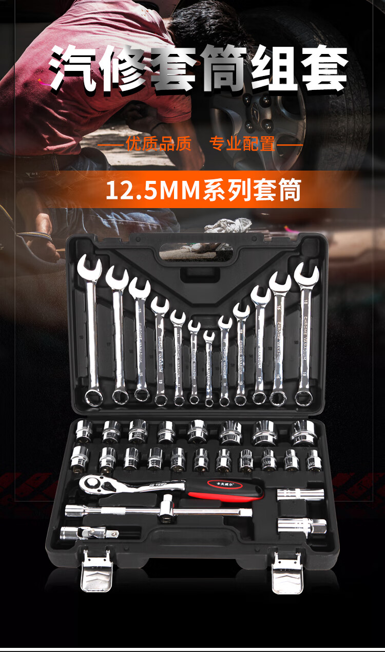 商品名称:卡夫威尔 铬钒钢汽修工具箱套装棘轮套筒扳手 汽车机修快速扳手五金修车工具组套大飞37件套12.5MM SS3222A