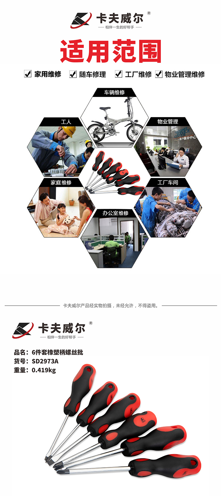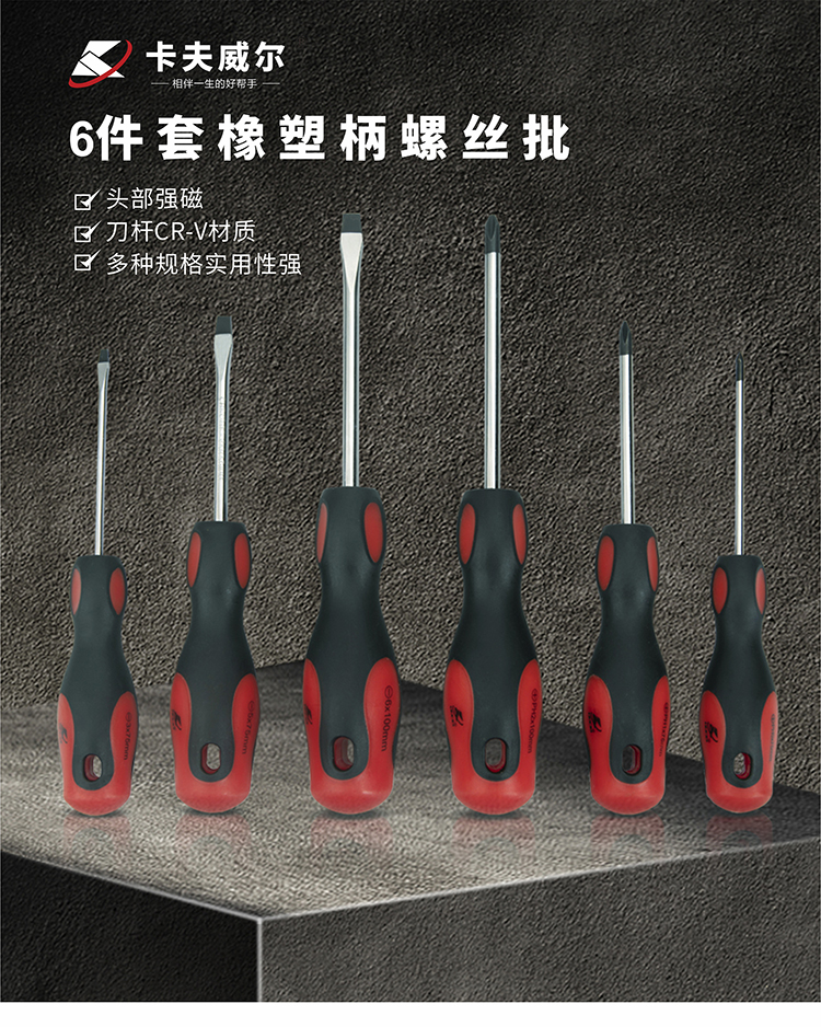 卡夫威尔 6件套橡塑柄螺丝批套装 螺丝刀改锥组 起子组 SD2973A 单位:套 5套起订