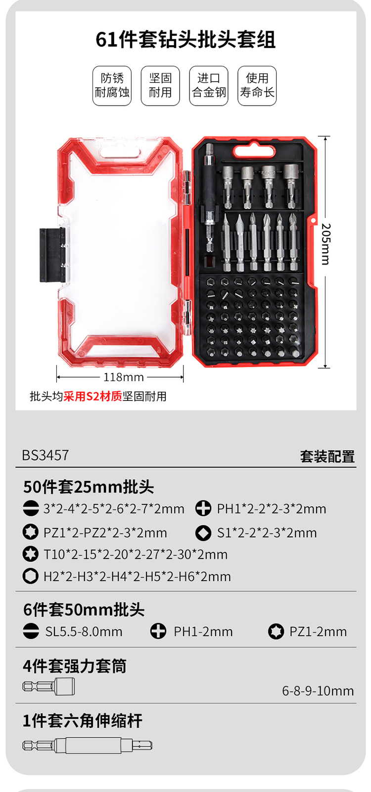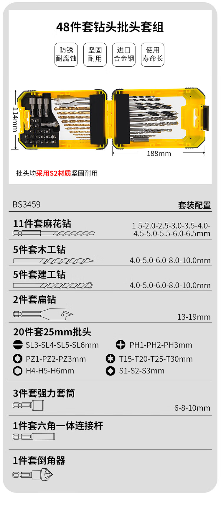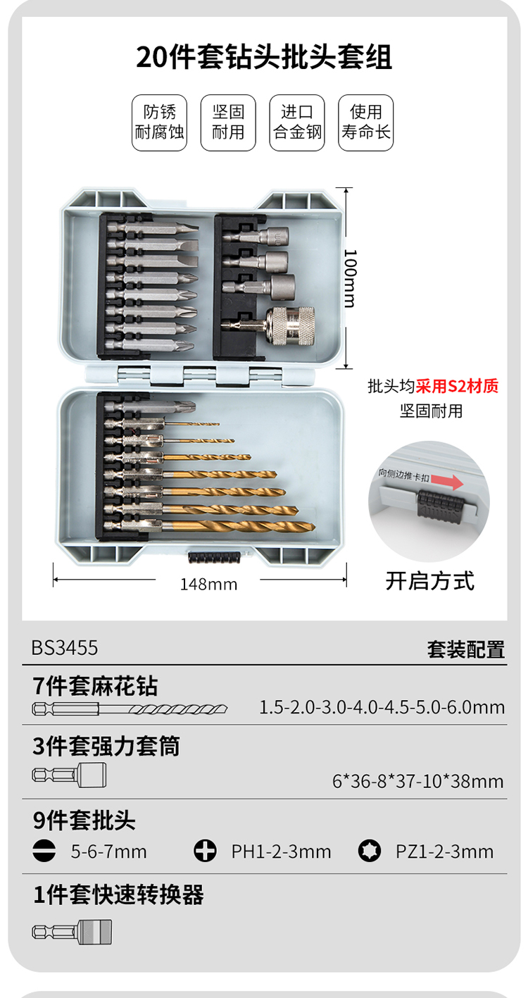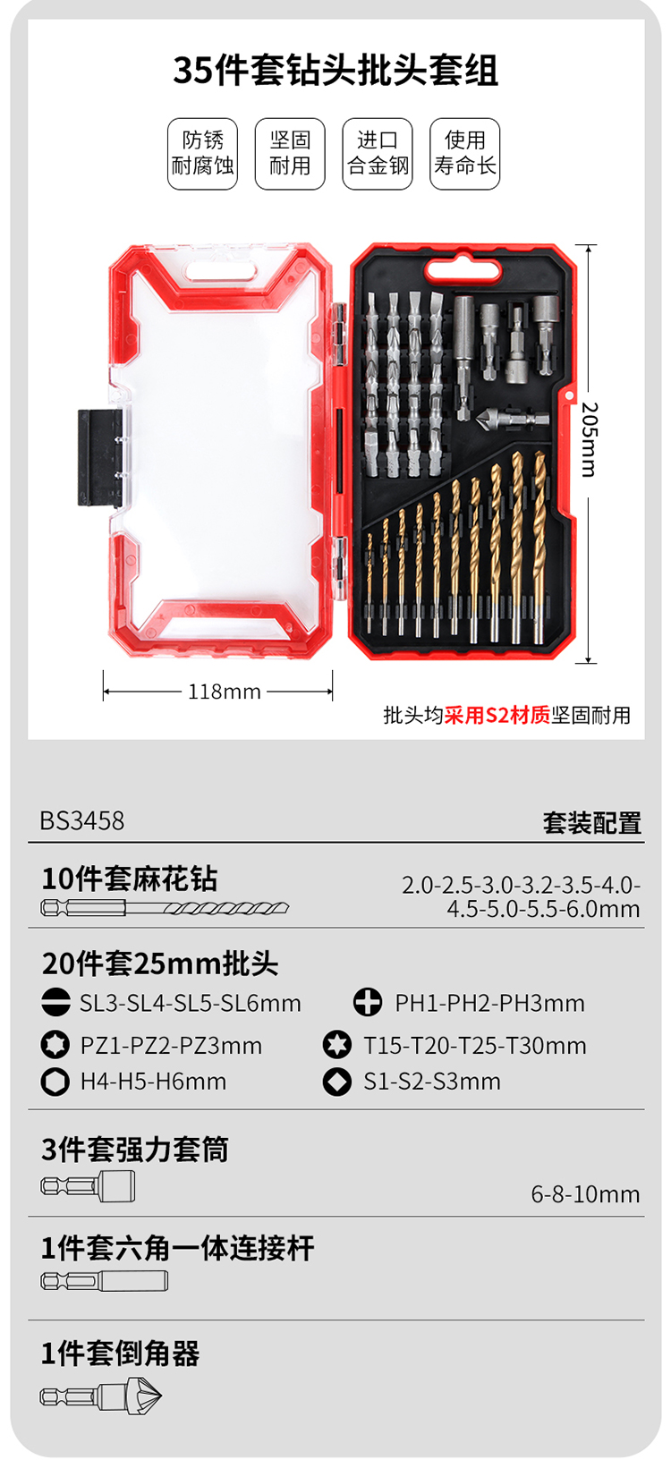 商品名称:卡夫威尔 螺丝刀头螺丝批头起子头麻花钻头强力套筒组套35件套 BS3458