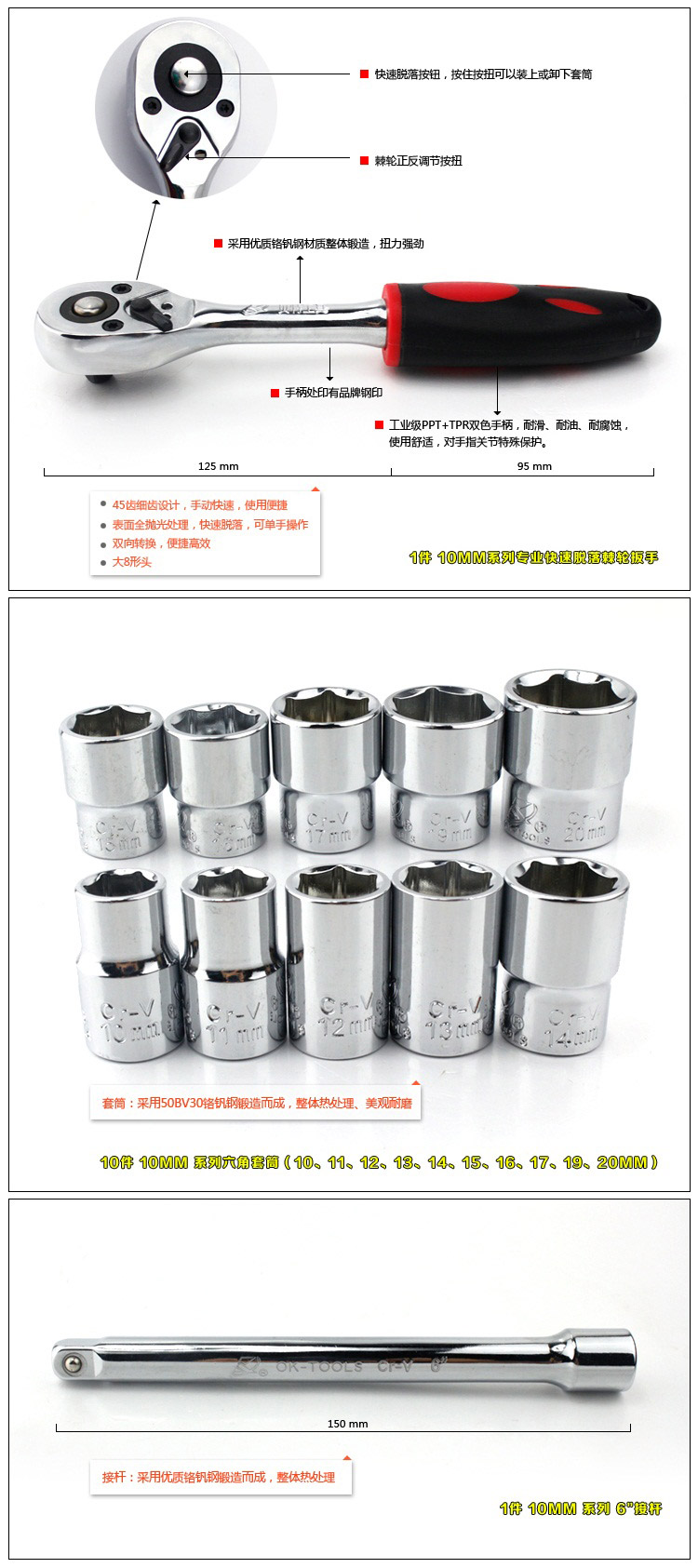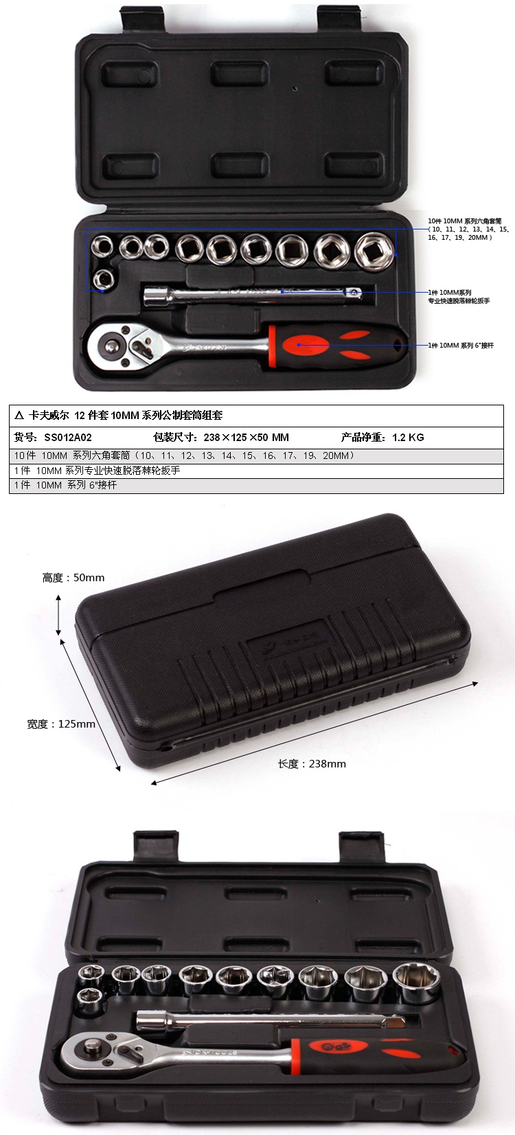 商品名称:卡夫威尔 汽修工具箱套装10mm中飞3/8棘轮套筒扳手组套汽车机修修车工具12件套 SS012A02