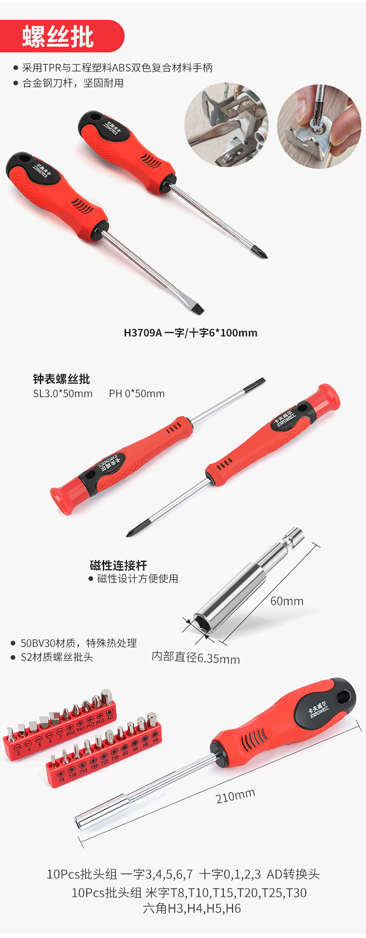 卡夫威尔 10支装S2双头螺丝批头 风批头 起子头 螺丝刀头 长度110mm BS2836B