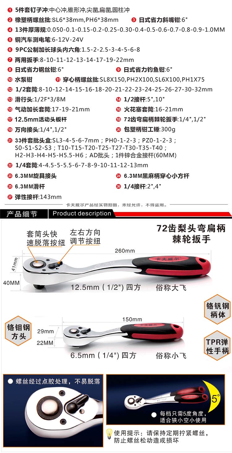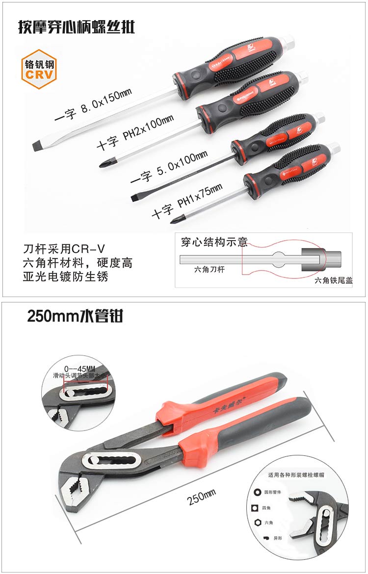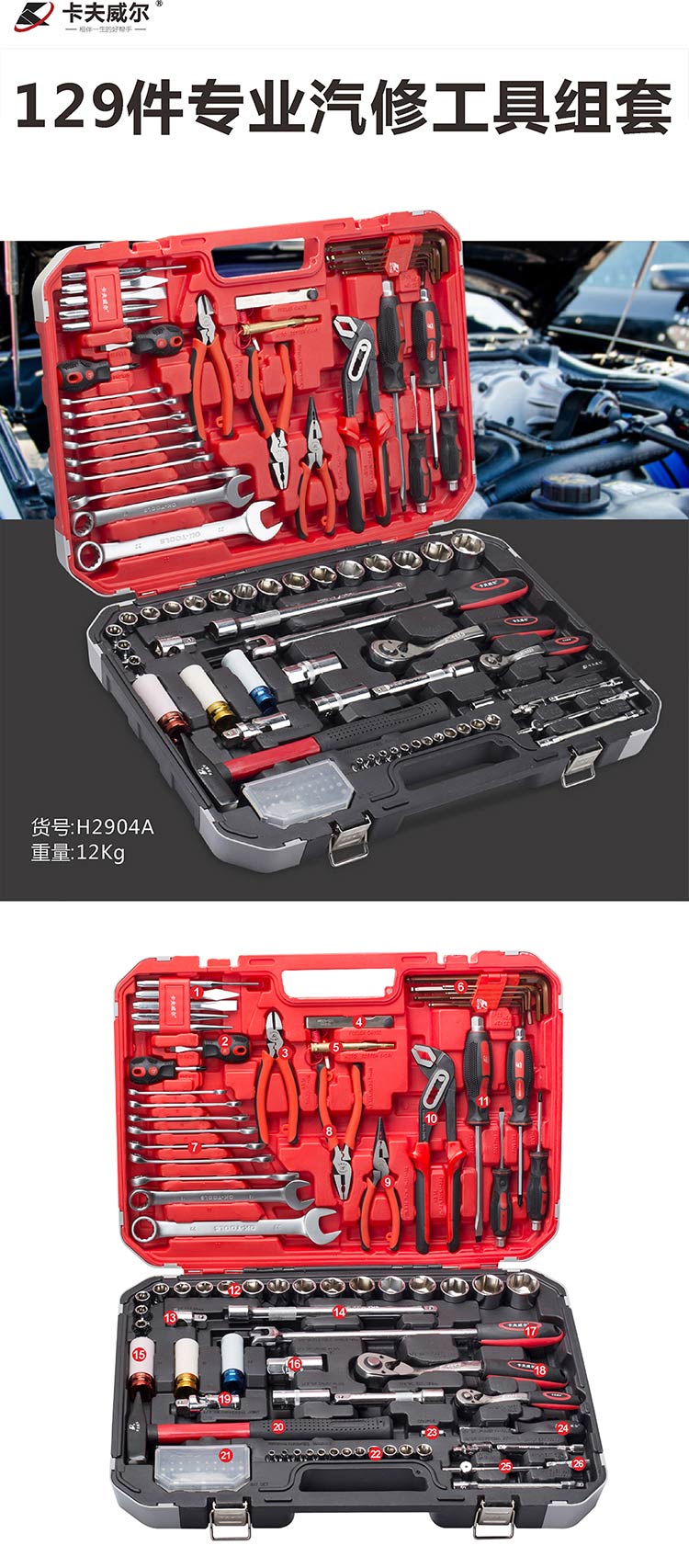 商品名称:卡夫威尔 工具箱 工具套装 汽修棘轮套筒扳手 汽修汽保随车129件套 H2904A