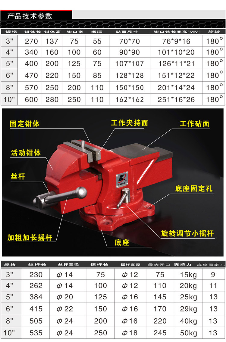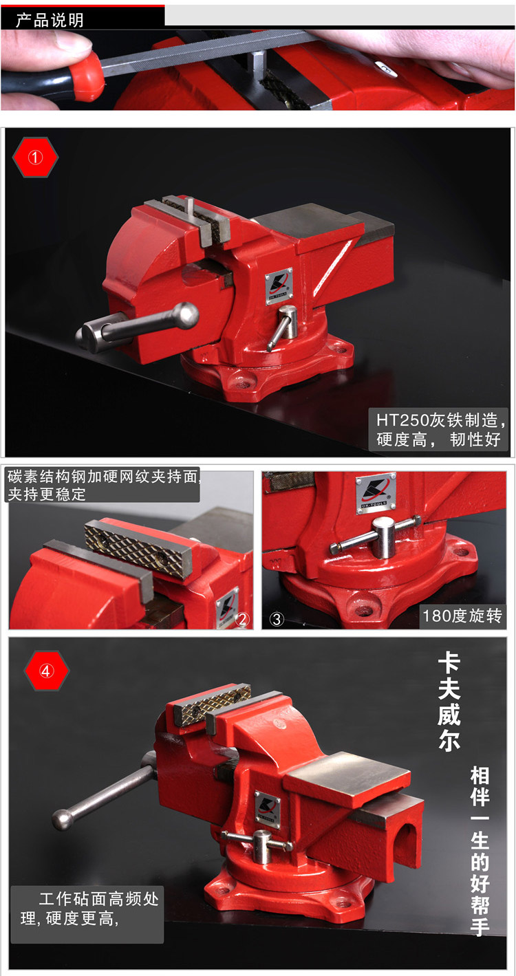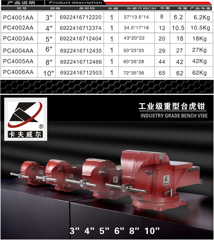 商品名称:卡夫威尔 10寸工业级重型台虎钳 平口钳虎钳桌钳 夹持工具 PC4006AA