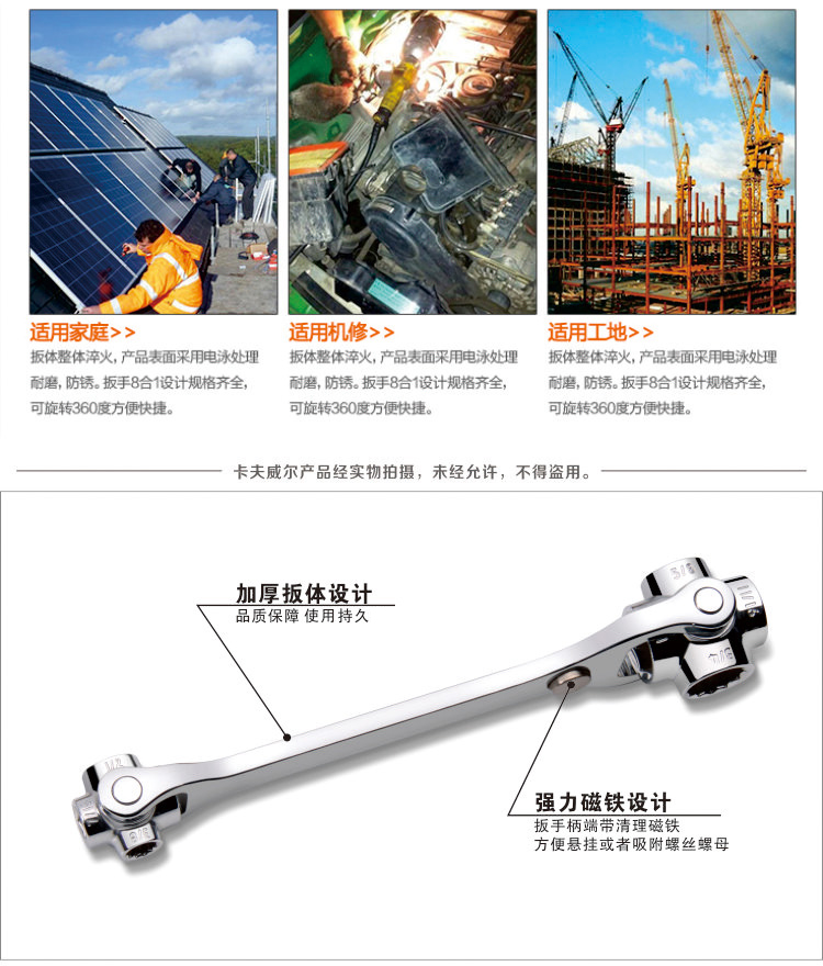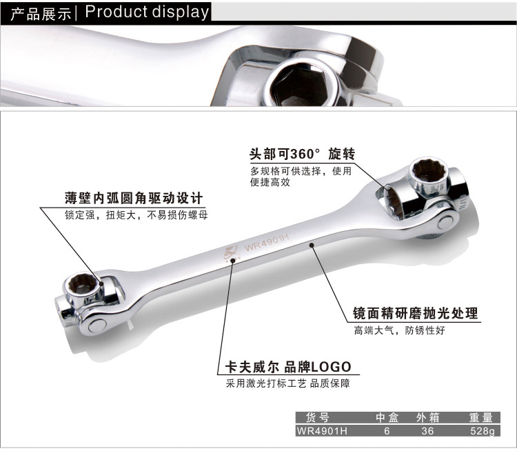 商品名称:卡夫威尔 八合一多功能万用套筒扳手360度扳手 WR4901H