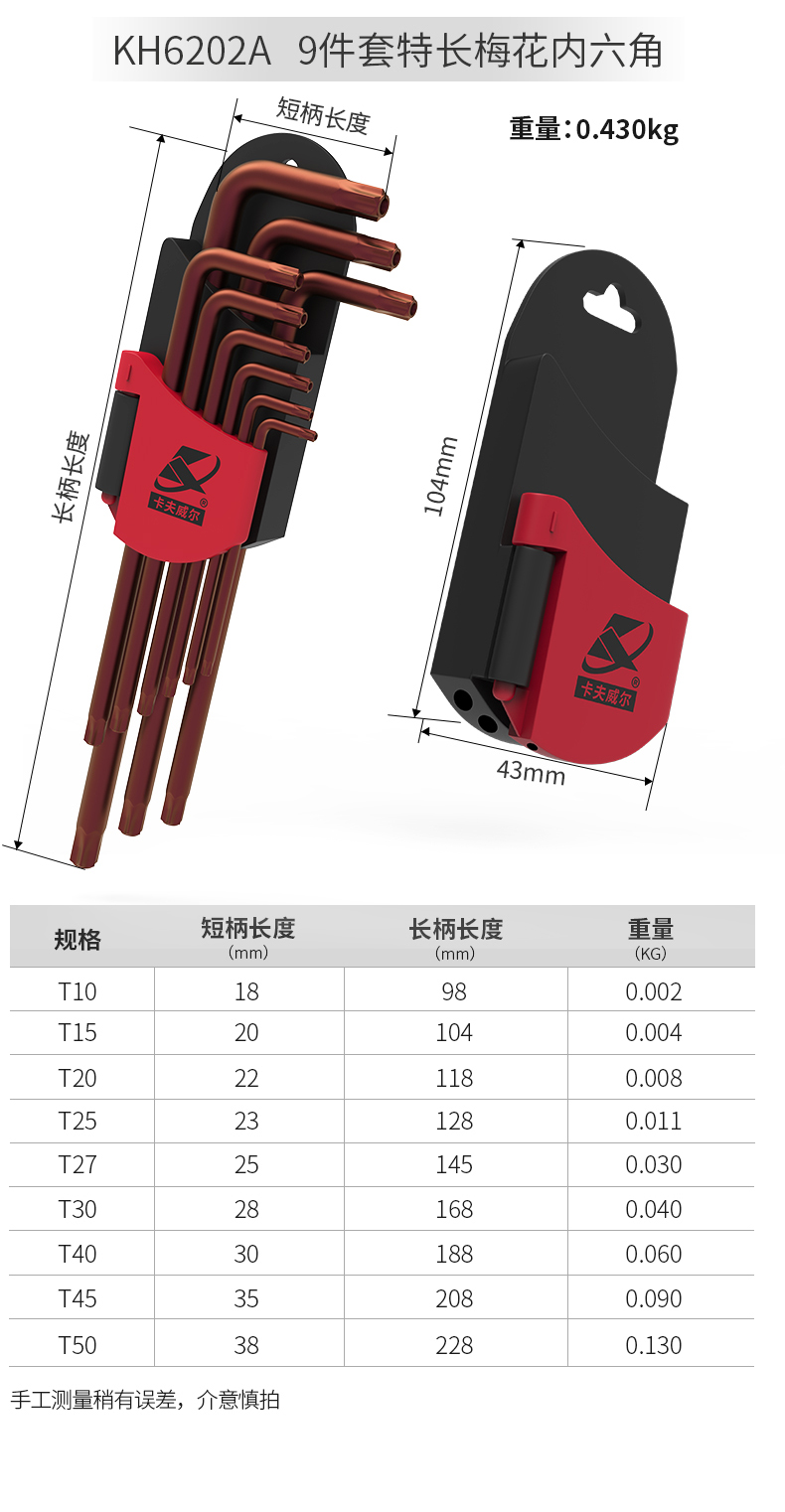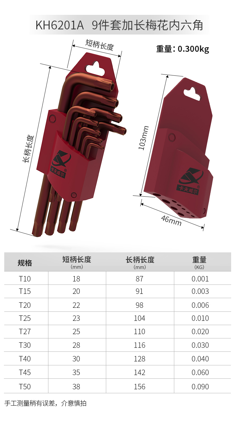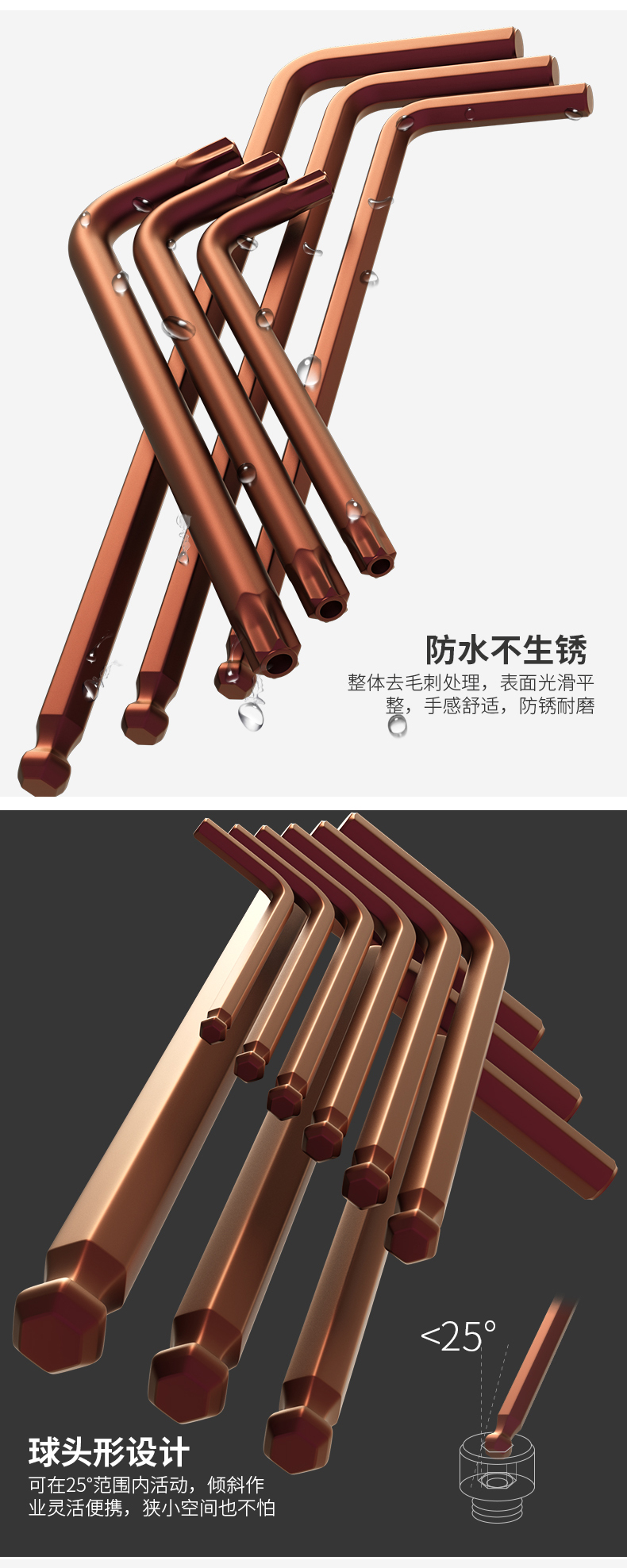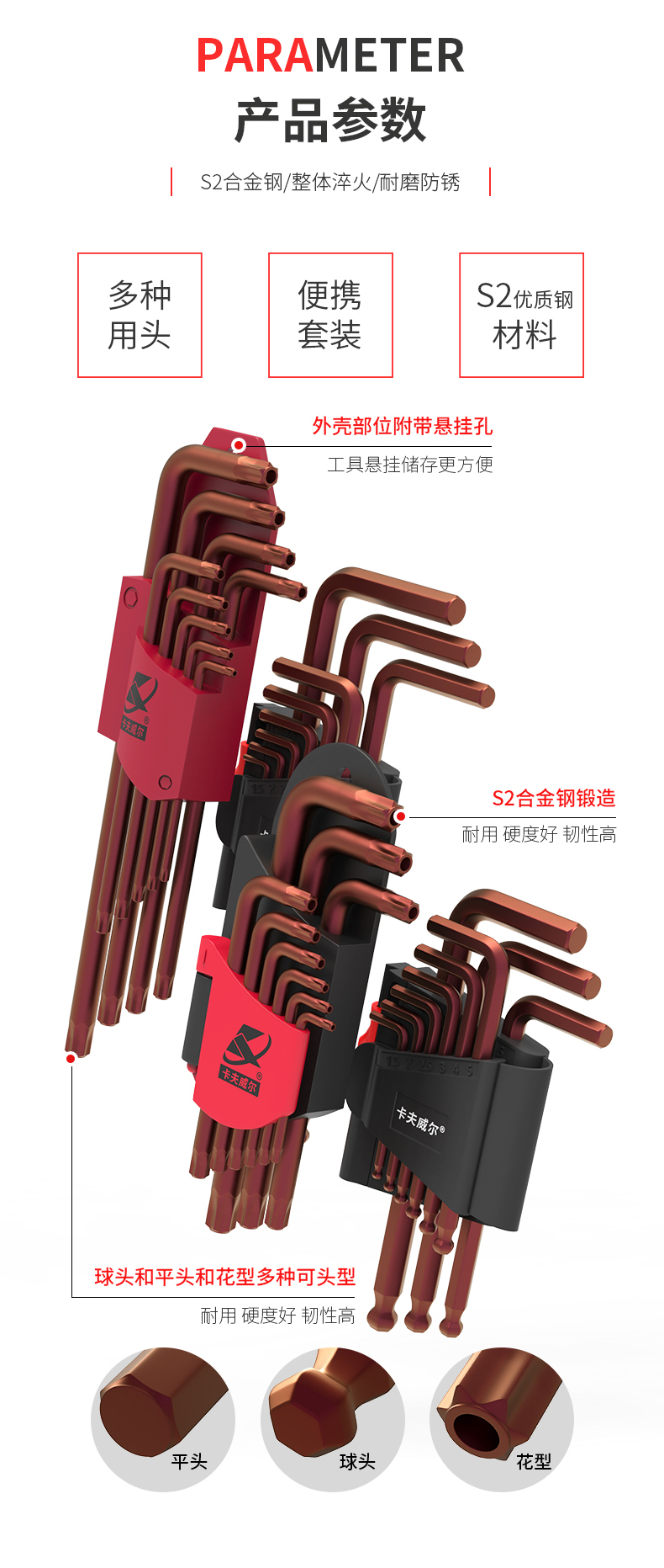 商品名称:卡夫威尔 球头内六角扳手套装9件套公制 自行车扳手螺丝刀手动维修工具1.5-2-2.5-3-4-5-6-8-10 KH3586 单位:套 10套起订