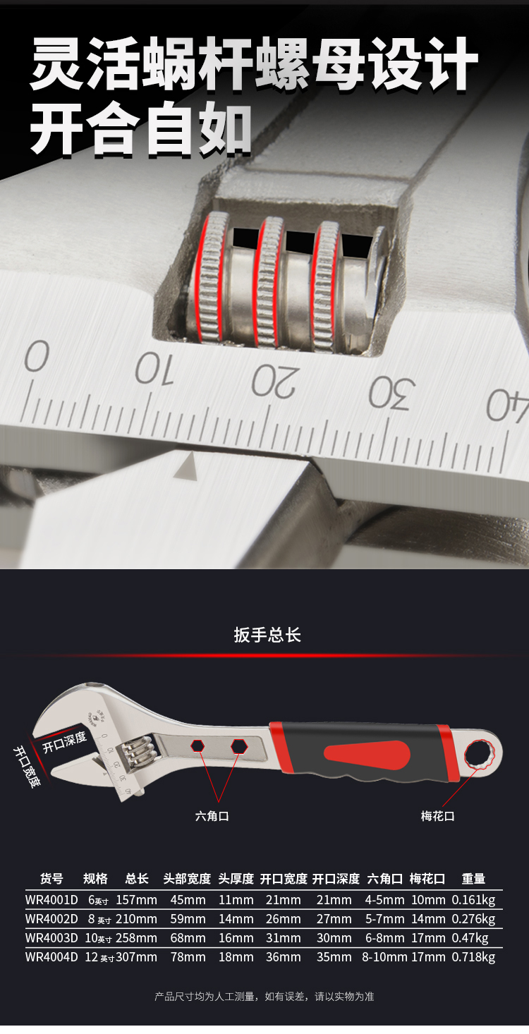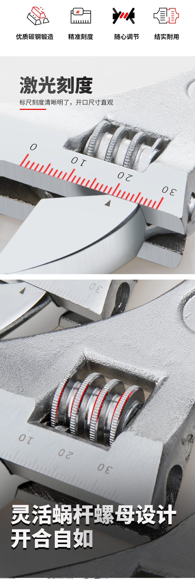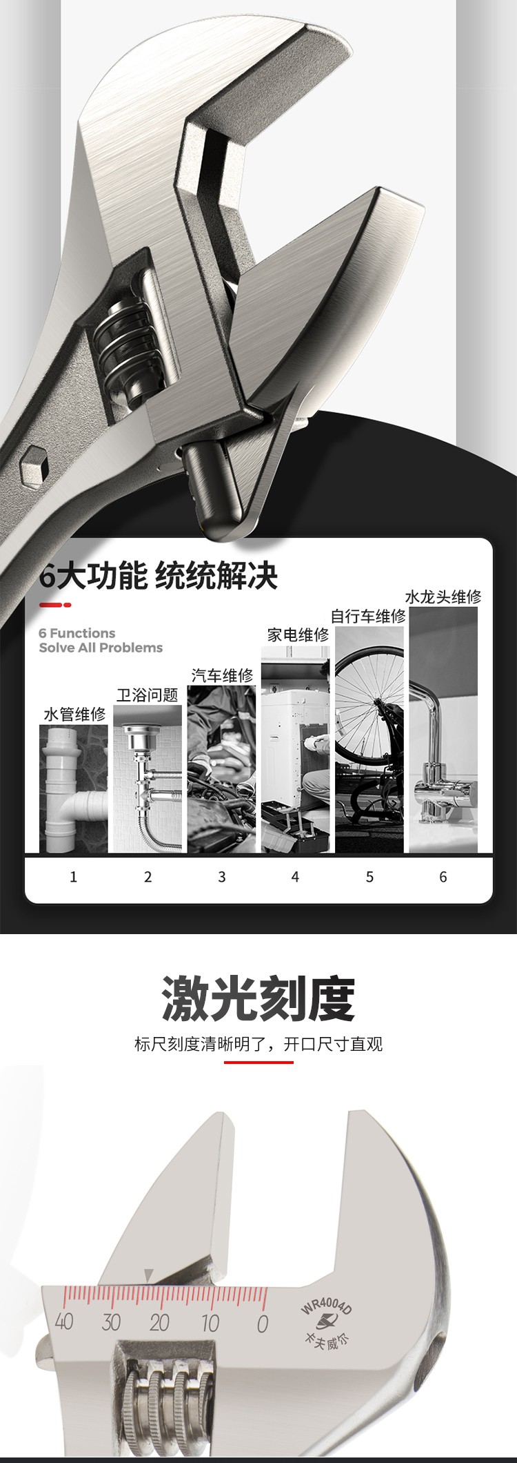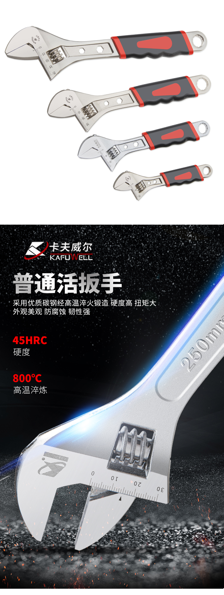 卡夫威尔 18寸镍铁活动扳手活口大号板子 开口扳手卫浴维修家用大开口工业级扳手 WR4018D-G