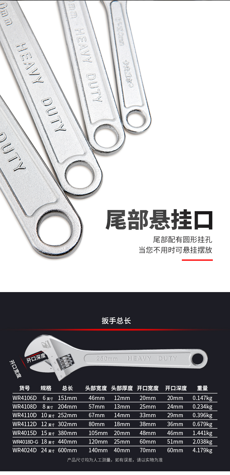 商品名称:卡夫威尔 18寸镍铁活动扳手活口大号板子 开口扳手卫浴维修家用大开口工业级扳手 WR4018D-G