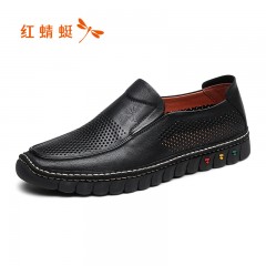 红蜻蜓 夏季男士潮流休闲镂空皮鞋时尚老人鞋