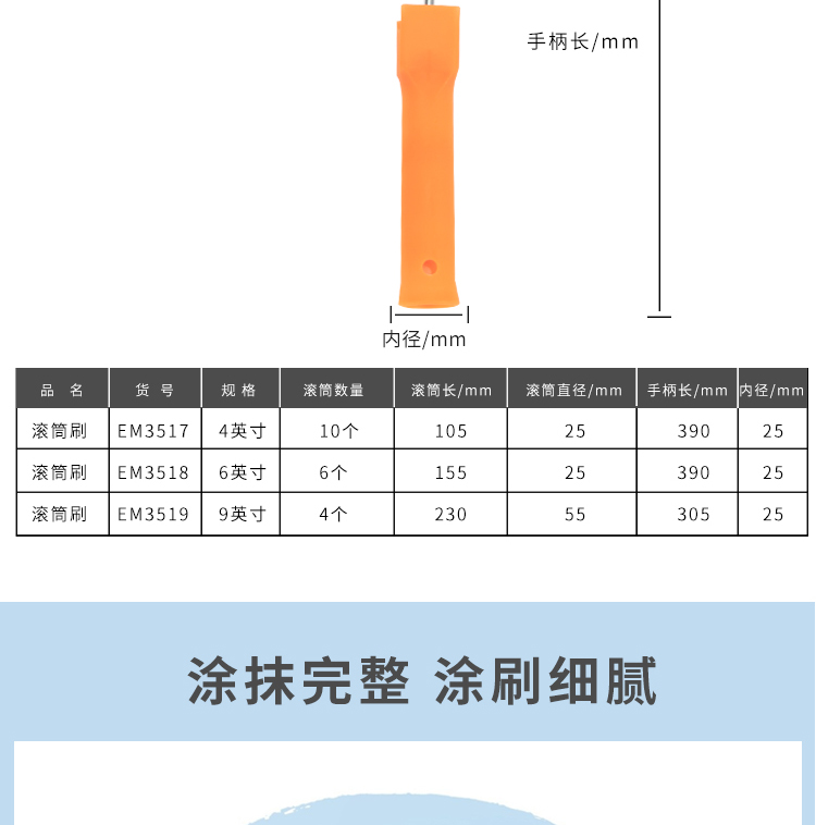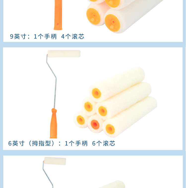 商品名称:卡夫威尔 油漆滚筒刷子6寸6个滚芯 乳胶漆涂料拇指滚刷毛刷墙工具 单位:套 5套起订
