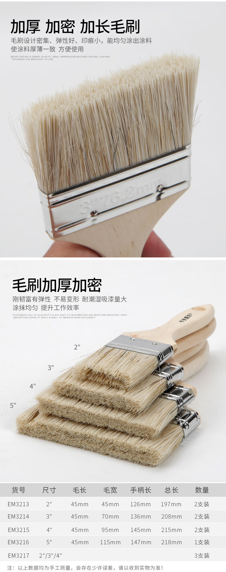 商品名称:卡夫威尔 猪毛油漆刷子涂料墙面漆猪鬃毛刷子软毛清洁扫灰刷墙工具 2寸2支装 EM3213 单位:组 20组起订