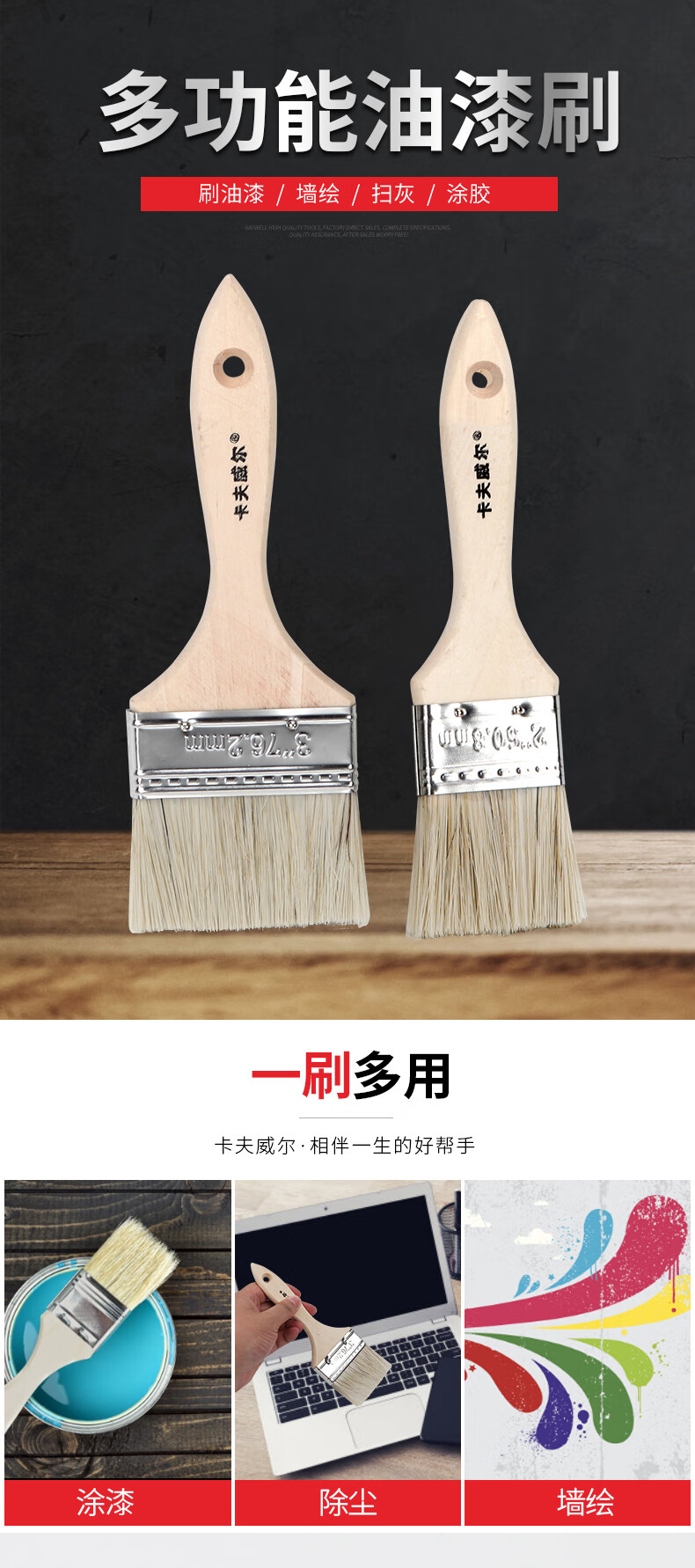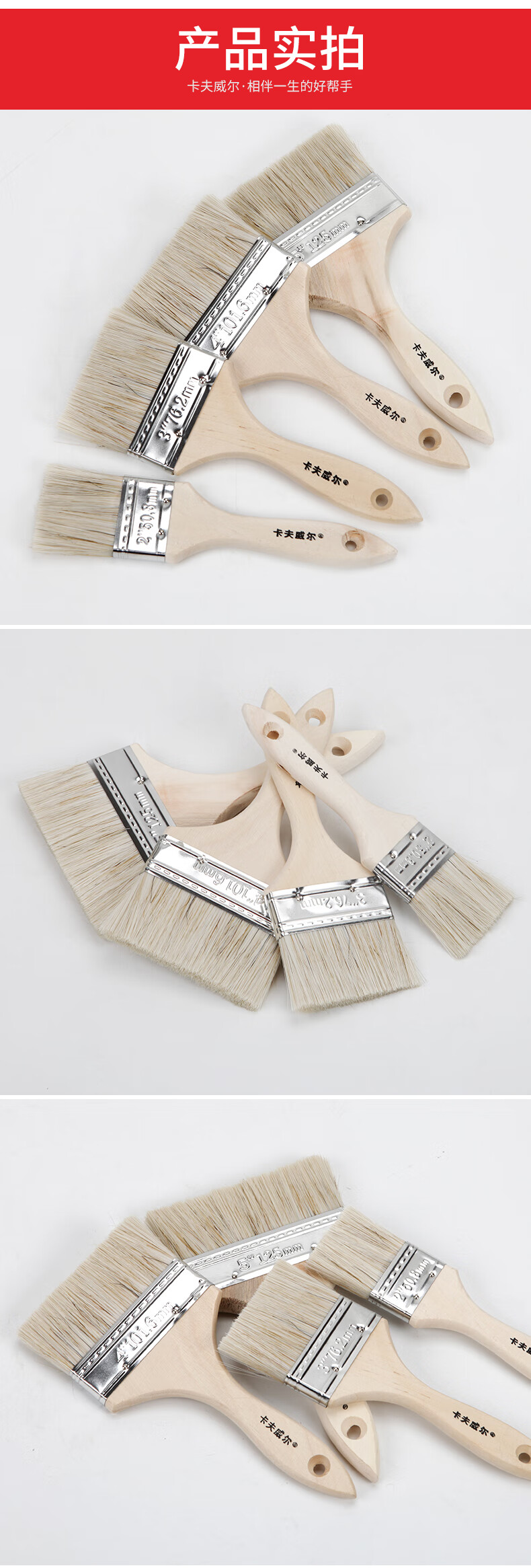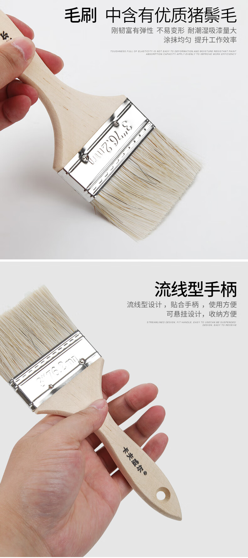 卡夫威尔 猪毛油漆刷子涂料墙面漆猪鬃毛刷子软毛清洁扫灰刷墙工具 2寸2支装 EM3213 单位:组 20组起订