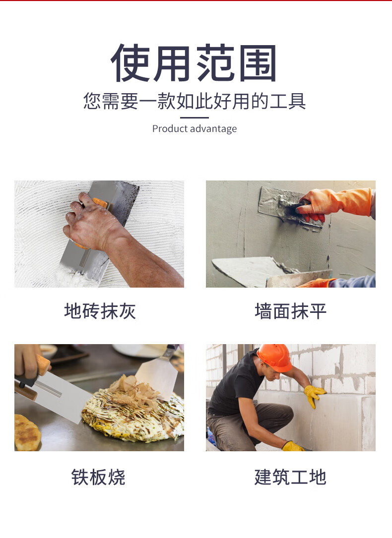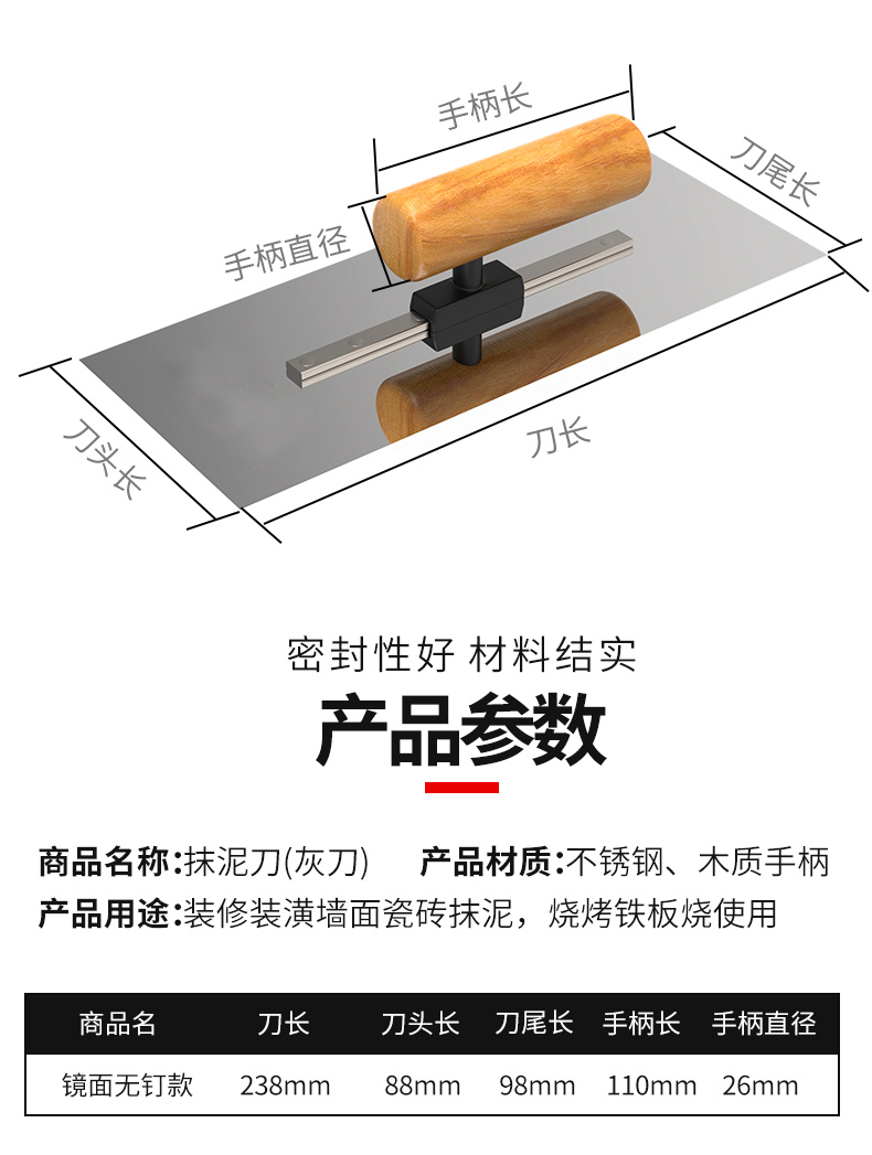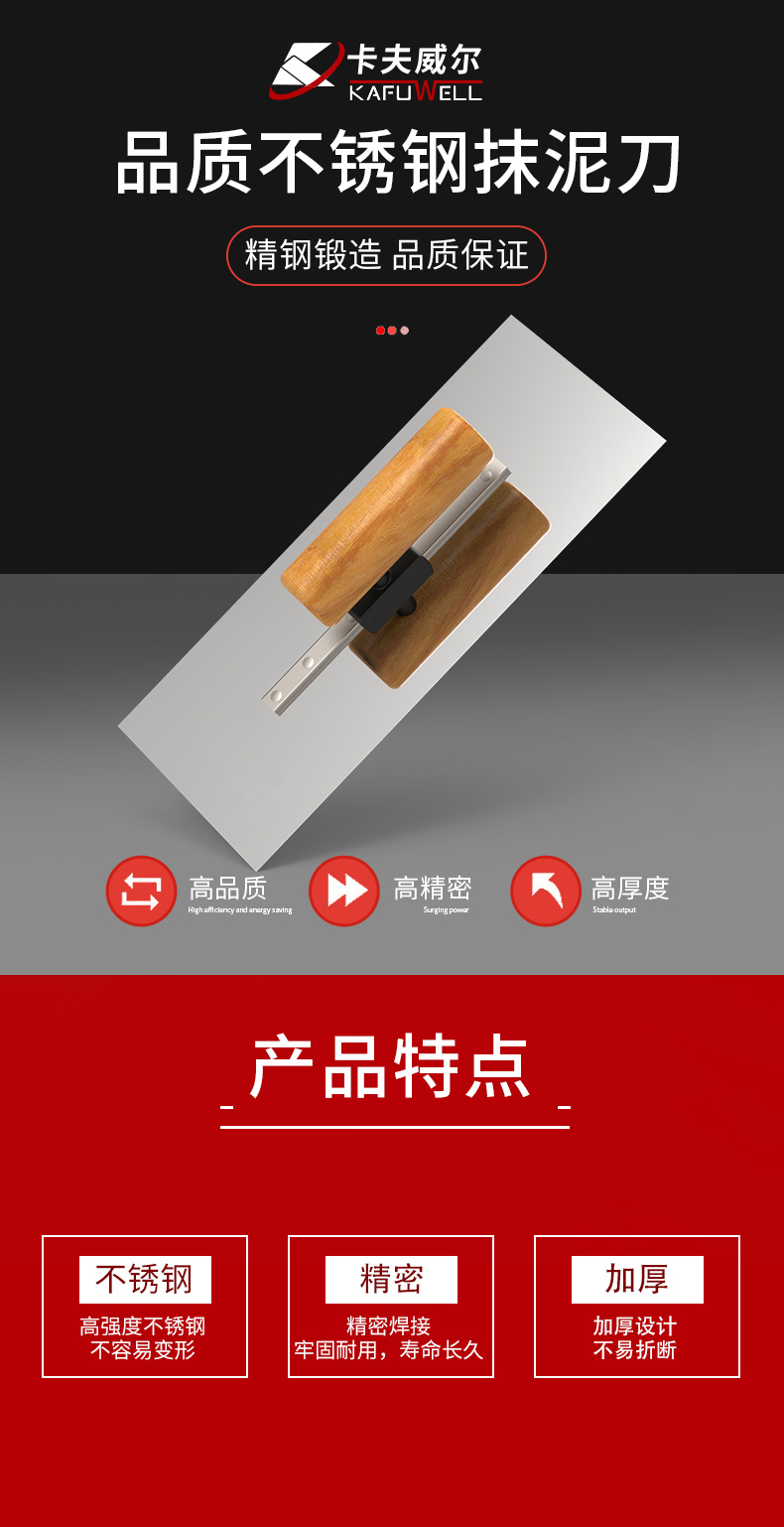 商品名称:卡夫威尔 不锈钢抹泥刀地砖墙面抹灰刀腻子刀泥瓦工抹泥板砌砖刀木柄清洁刮刀 WK3460 单位:个 10个起订