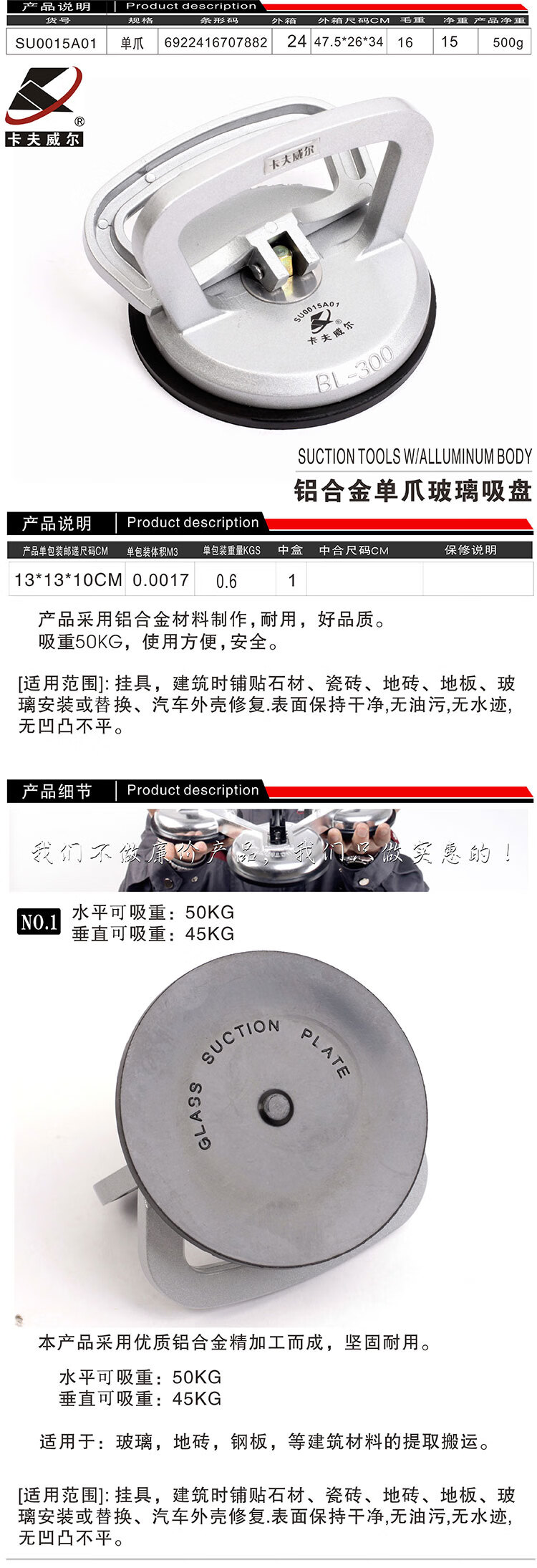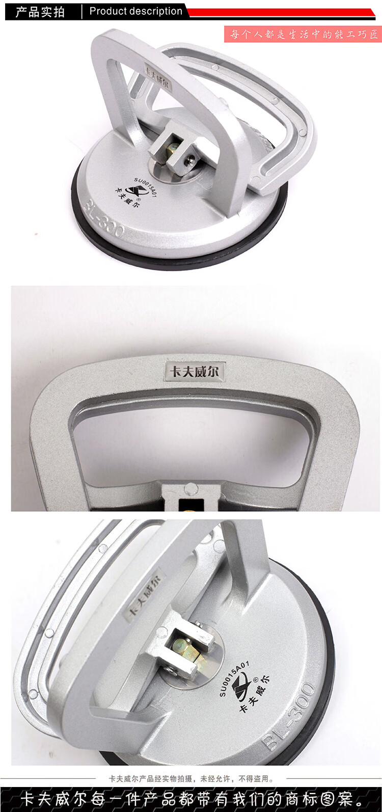 商品名称:卡夫威尔 铝合金单爪玻璃吸盘 屏幕吊顶安装搬运瓷砖地板抽真空吸提器 SU0015A01 单位:个 5个起订