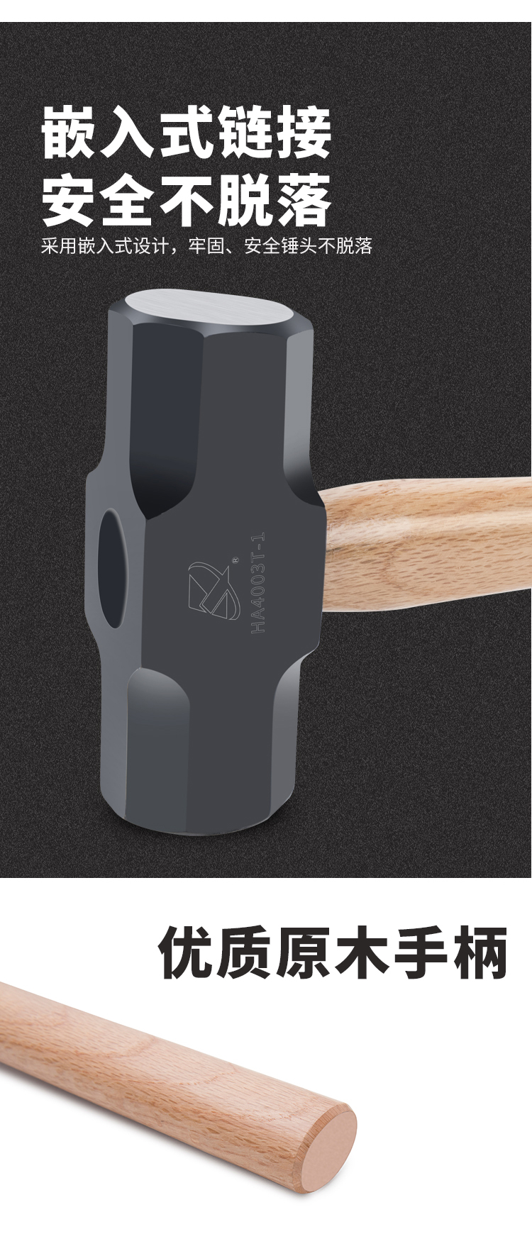 商品名称:卡夫威尔 青冈木手柄八角锤子大铁锤铁匠锤砸墙铁榔头900G HA4001T-1