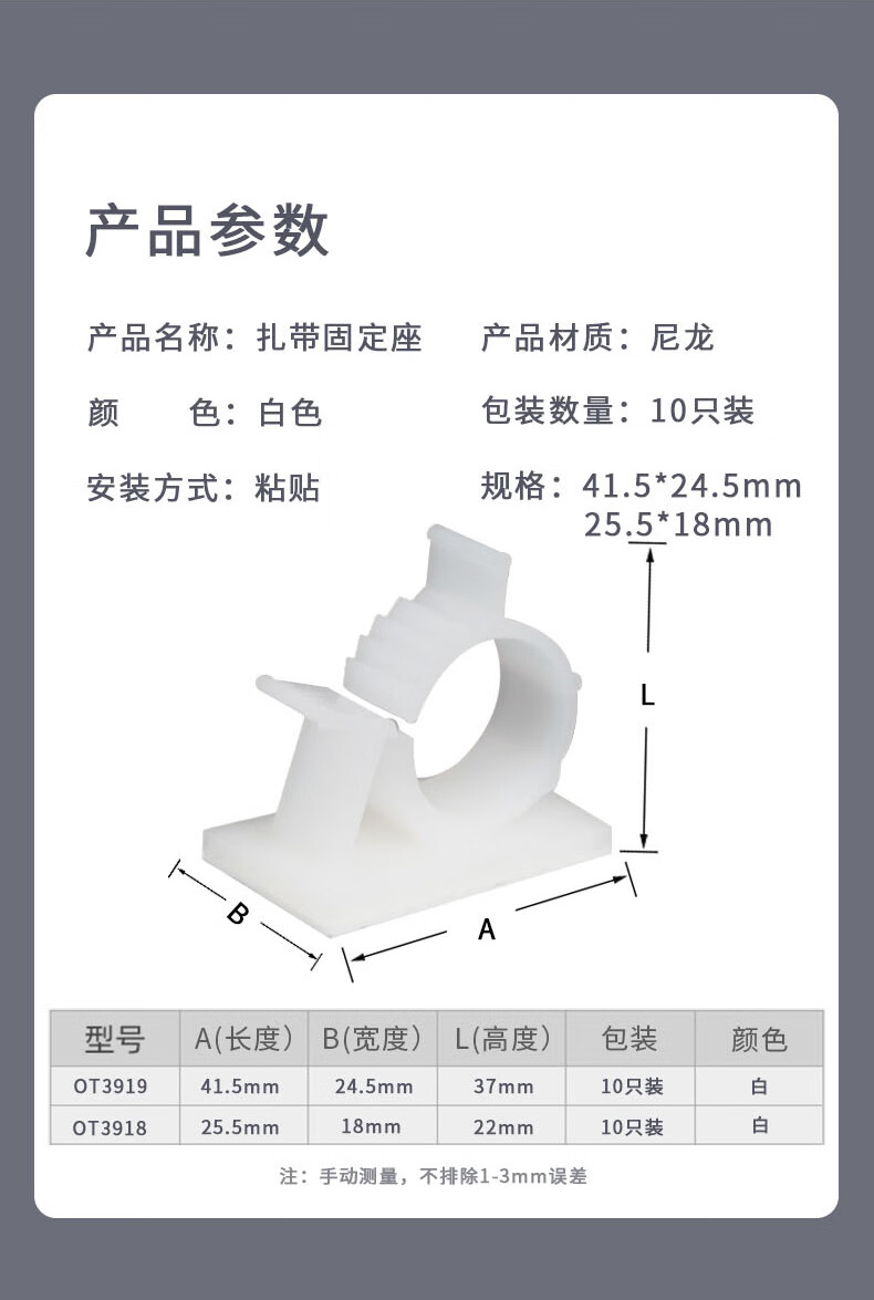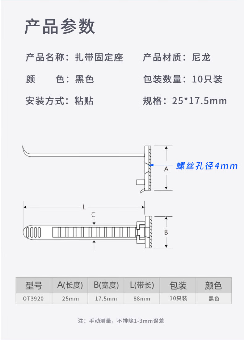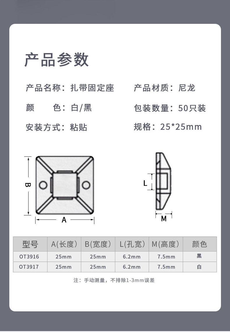 商品名称:卡夫威尔 尼龙扎带固定盘 25*25 mm 黑色50只装 OT3916 单位:包 20包起订
