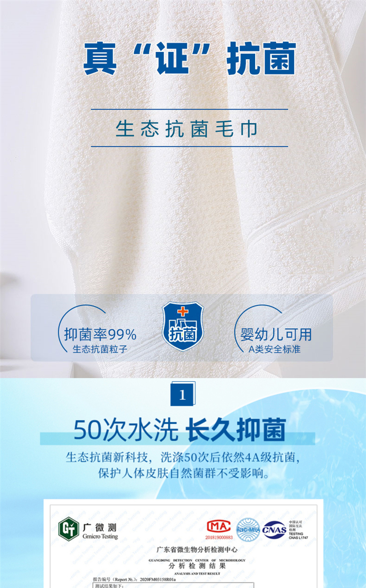 商品名称:金号 索菲亚/4A抗菌系列-4 双条毛巾礼盒装 HK1888