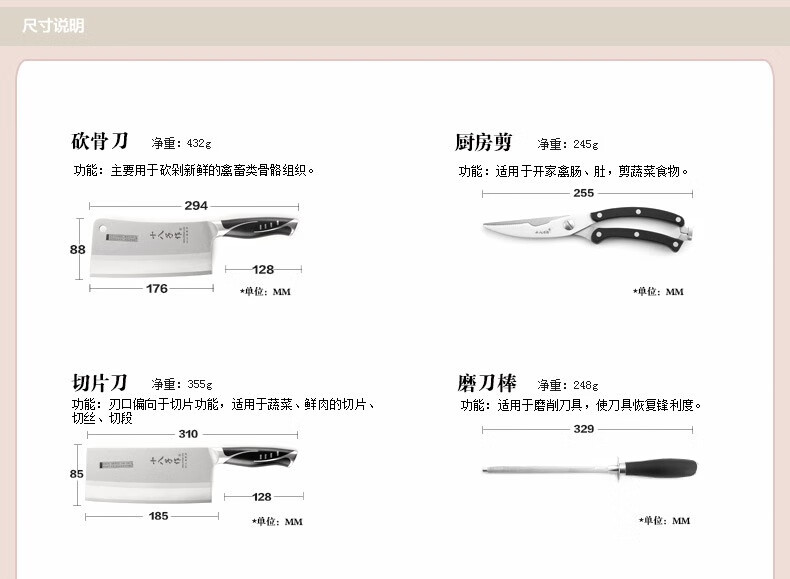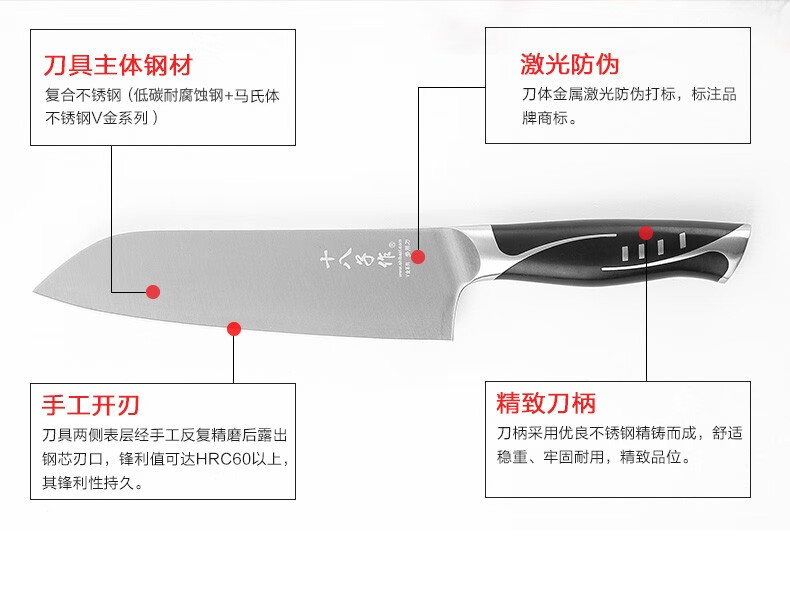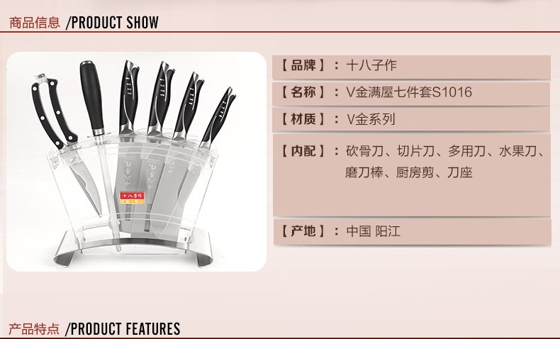商品名称:十八子作 刀具套装 高品位V金钢材家用阳江十八子菜刀套装七件套S1016 单位:套
