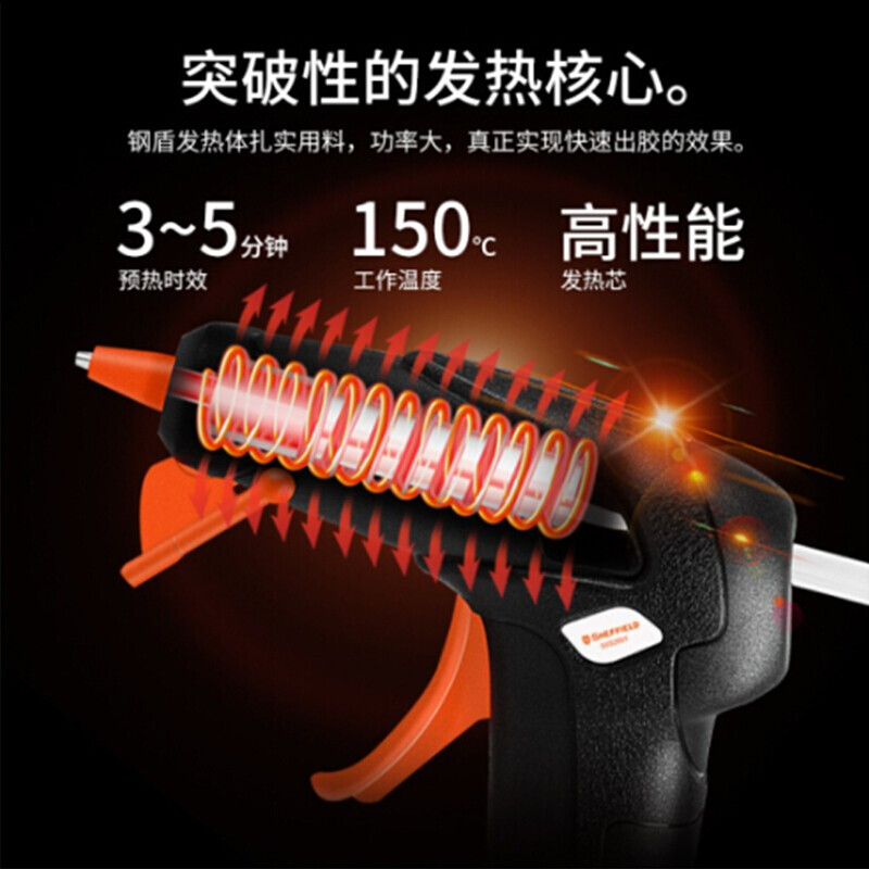商品名称:钢盾 SHEFFIELD S032001 热熔胶枪8W 快速升温环保胶料内置高品质锂电池无线束缚