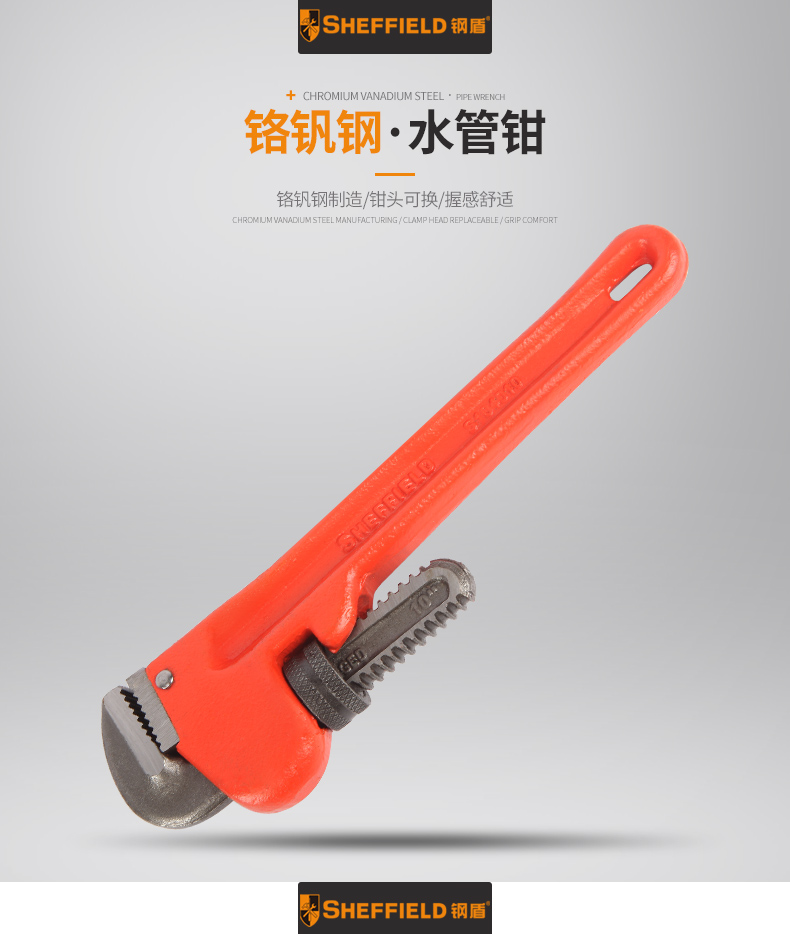 钢盾 SHEFFIELD S104012 管钳管子钳12英寸 水管钳水泵钳圆管钳管子扳手 钳子工具 多功能扳手重型管钳子