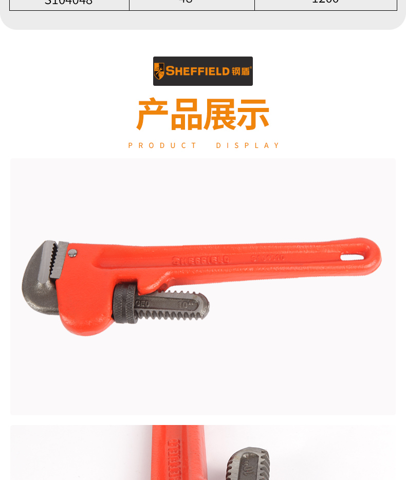 商品名称:钢盾 SHEFFIELD S104012 管钳管子钳12英寸 水管钳水泵钳圆管钳管子扳手 钳子工具 多功能扳手重型管钳子