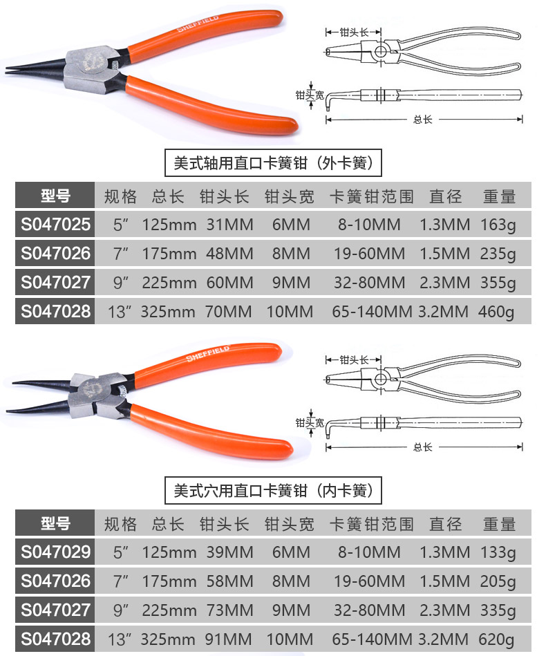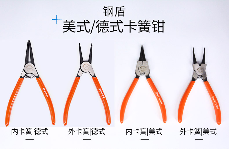 钢盾 SHEFFIELD S047003 德式轴用直嘴卡簧钳7英寸
