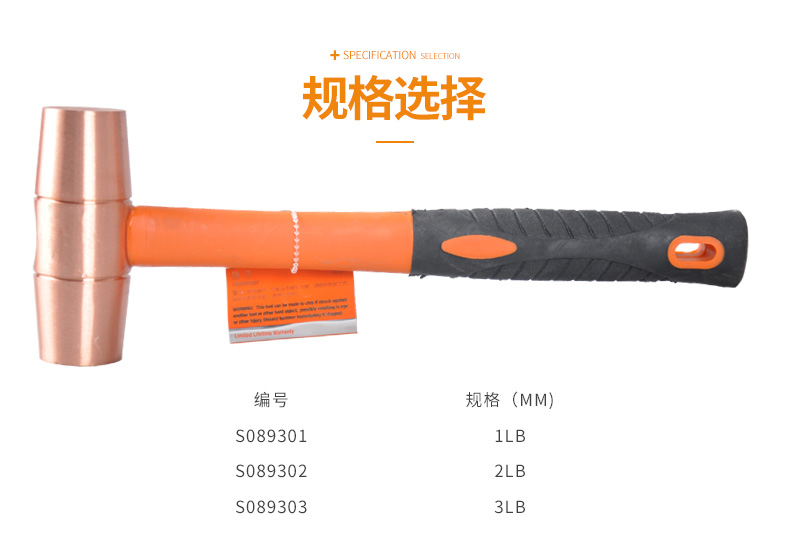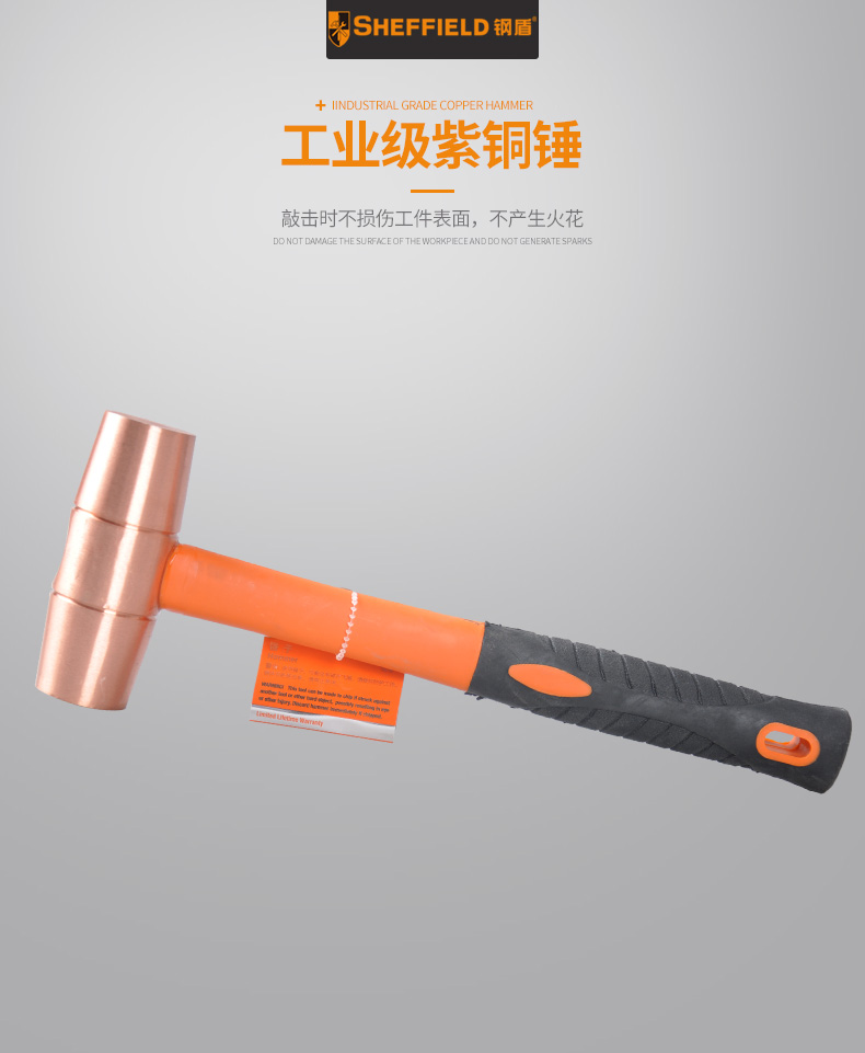 商品名称:钢盾 SHEFFIELD S089301 紫铜锤防爆锤 圆头锤纤维柄无火花榔头敲击工具铜锤1LB