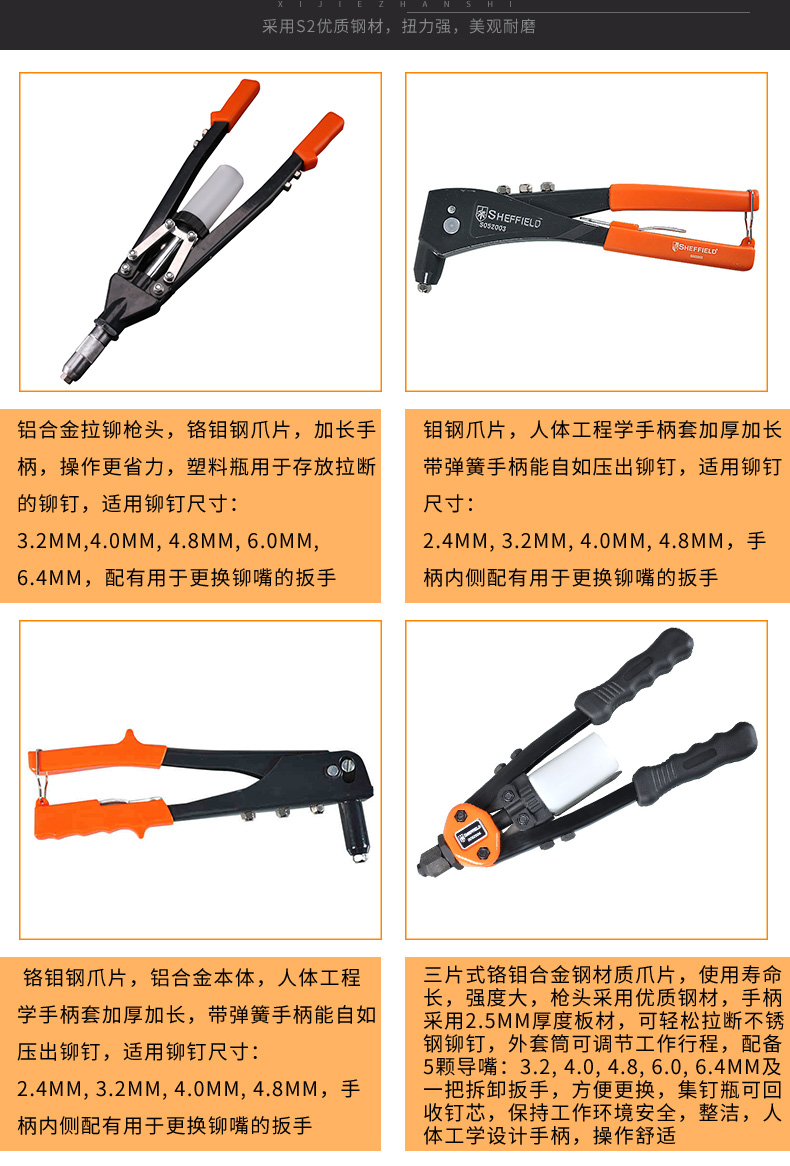 商品名称:钢盾 SHEFFIELD S052001 双把手拉铆枪 2.4-4.8 手动双把拉铆枪 拉帽枪 拉铆钉 铆钉枪 拉钉枪