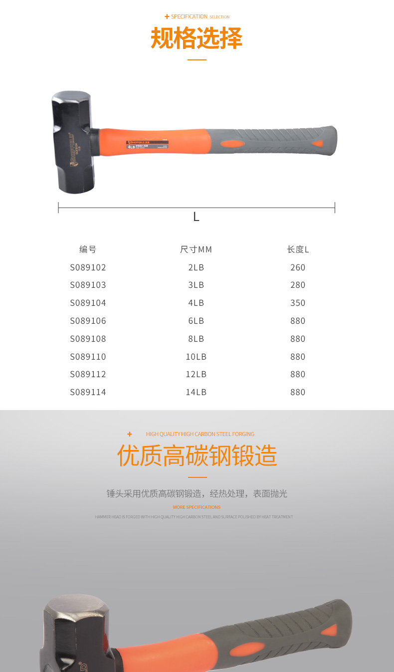 商品名称:钢盾 SHEFFIELD S089103 纤维柄八角锤3LB
