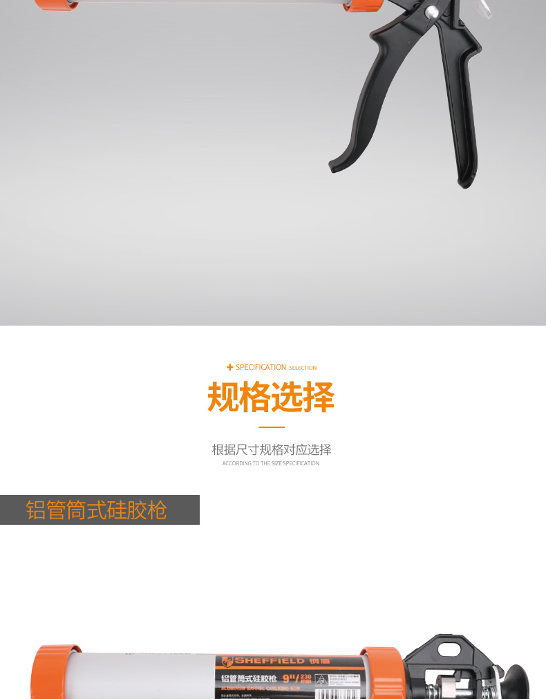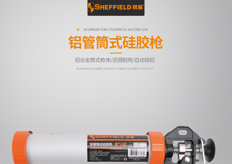商品名称:钢盾 SHEFFIELD S052014 铝管筒式硅胶枪防水胶防霉玻璃胶 压胶枪 密封胶枪 15英寸