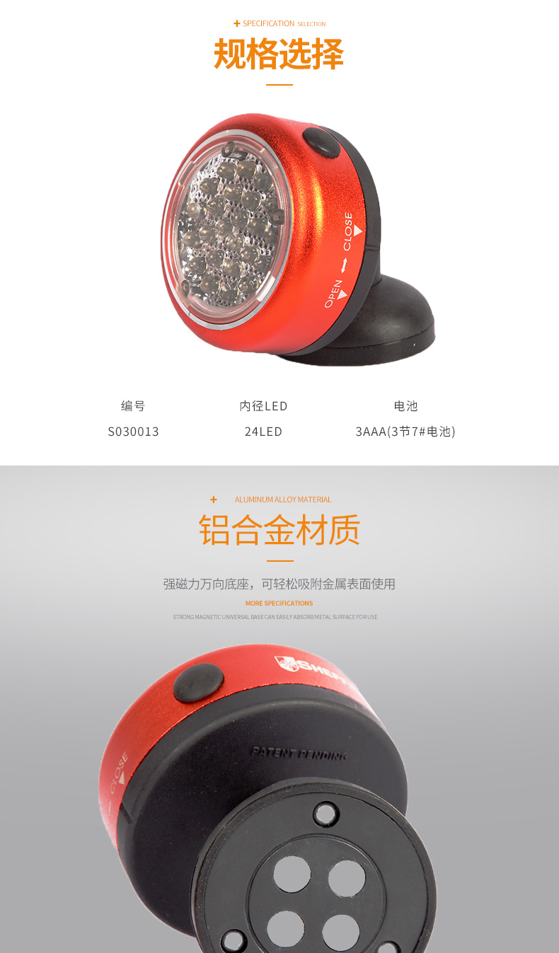 商品名称:钢盾 SHEFFIELD S030013 磁性万向LED工作灯 应急维修灯 24LED灯珠超亮