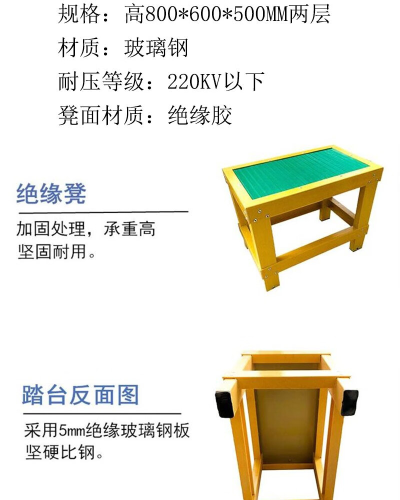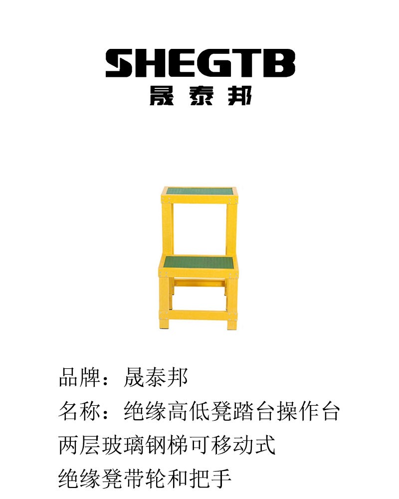 商品名称:晟泰邦 绝缘高低凳踏台操作台两层玻璃钢梯可移动式绝缘凳带轮和把手 高800*600*500MM两层