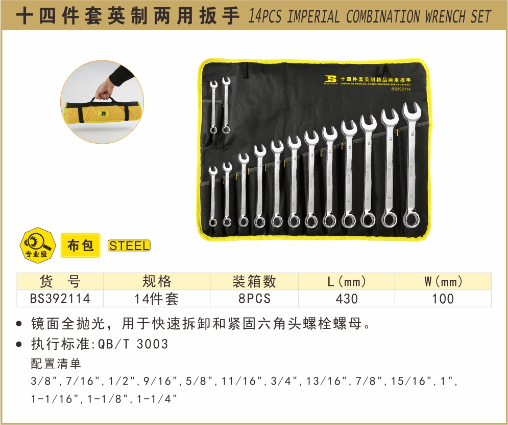 商品名称:波斯(BOSI TOOLS)精品英制两用扳手14PC BS392114 /件