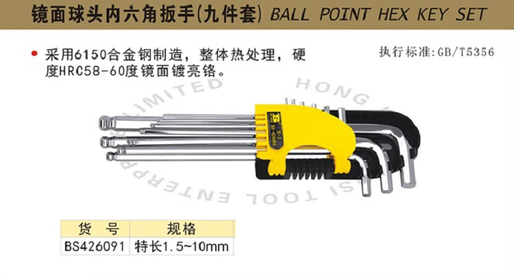 商品名称:波斯工具(BOSI TOOLS)镜面球头内六角扳手 BS426091 9PC特长