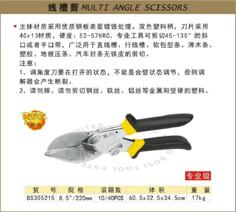 波斯工具(BOSI TOOLS)线槽剪 BS305215 8.5英寸/220mm