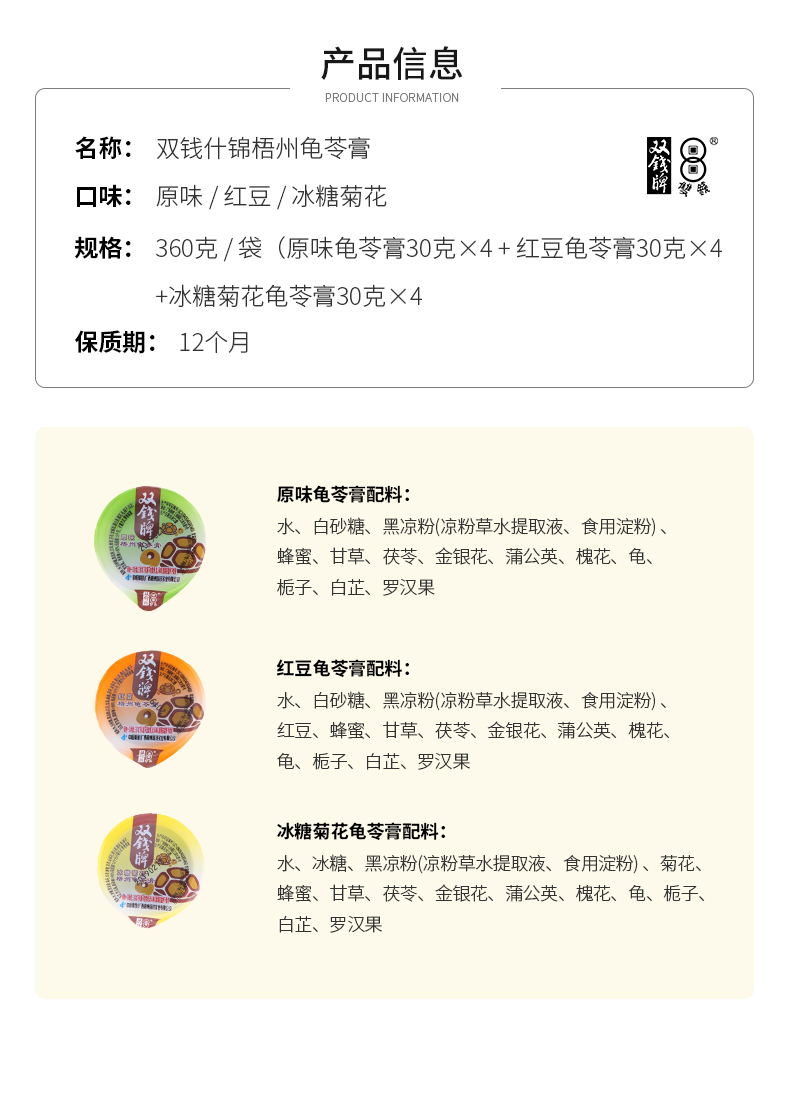 双钱什锦龟苓膏小果冻袋装啫喱杯360g/袋红豆原味冰糖菊花 什锦龟苓膏