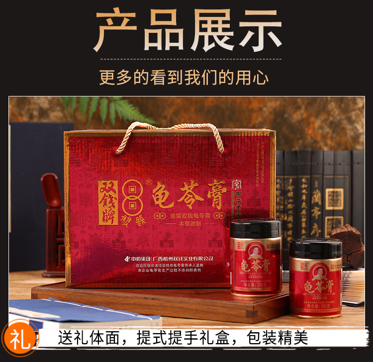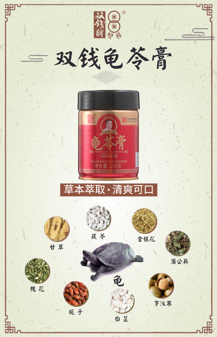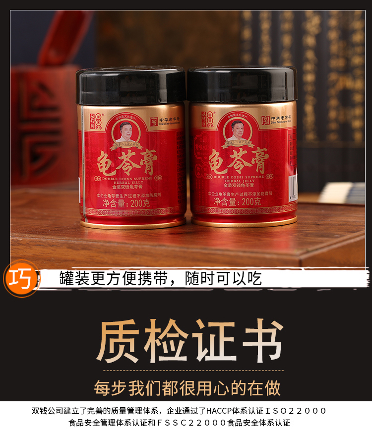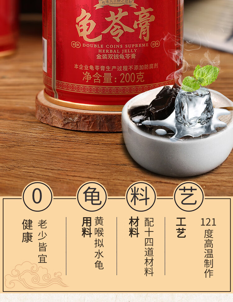双钱牌龟苓膏 金装双钱原味龟苓膏 200g *12罐 礼盒装 随手礼 单位:箱