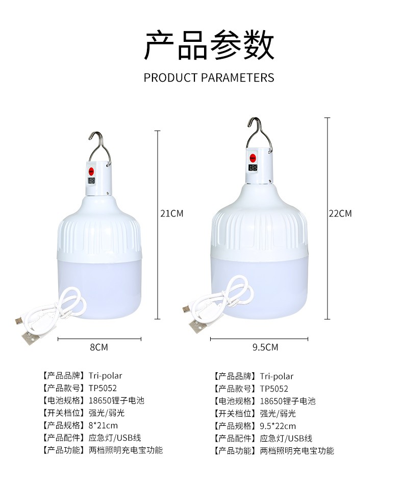 商品名称:三极户外(Tri-polar)应急照明灯led可充电灯泡停电家用移动户外夜市灯摆摊地摊灯TP5052 大号 单位:个