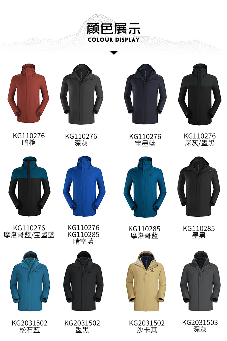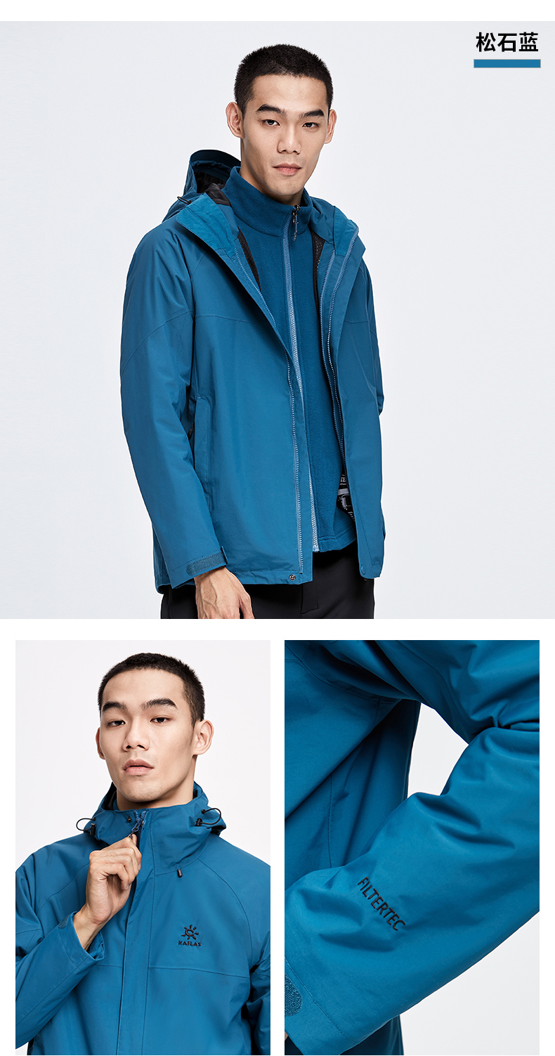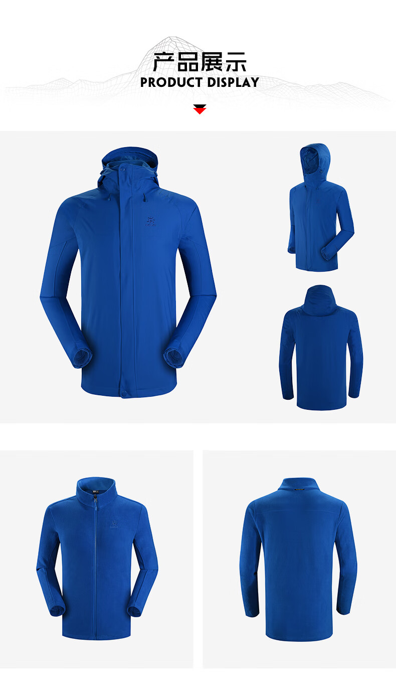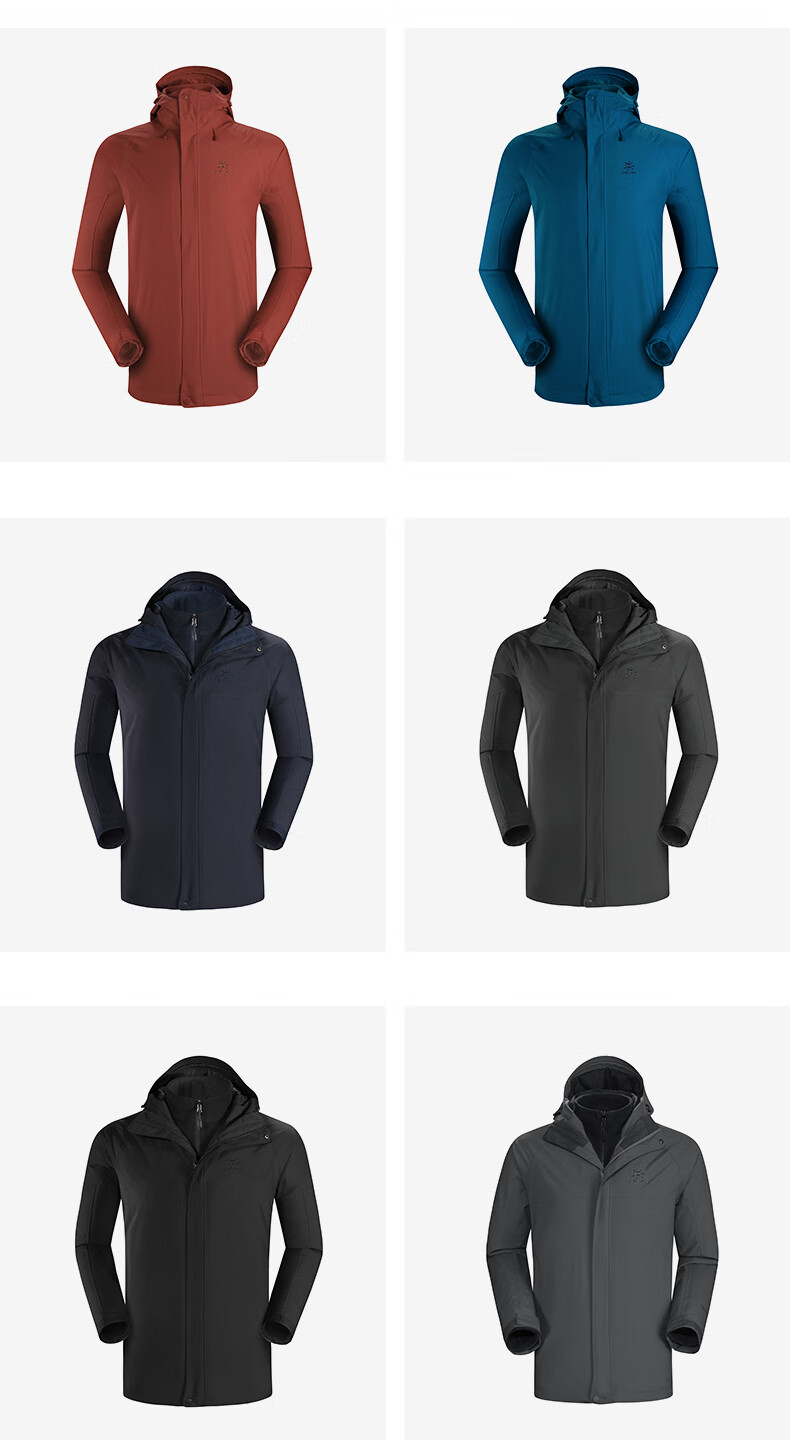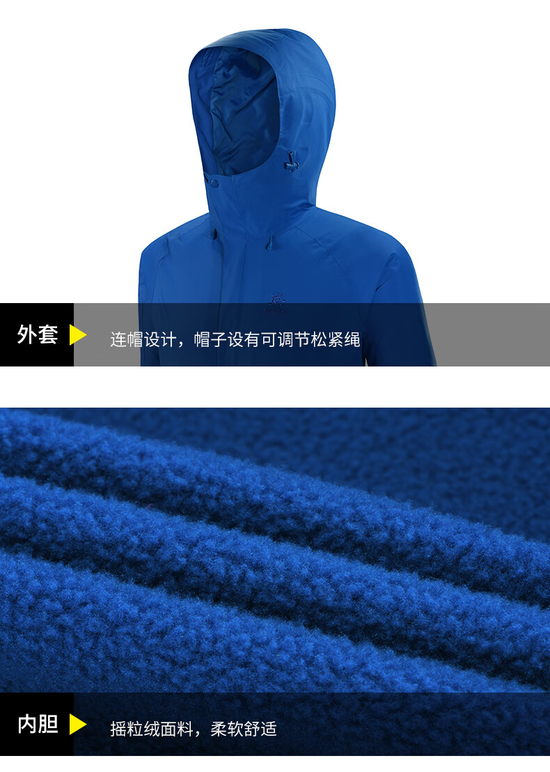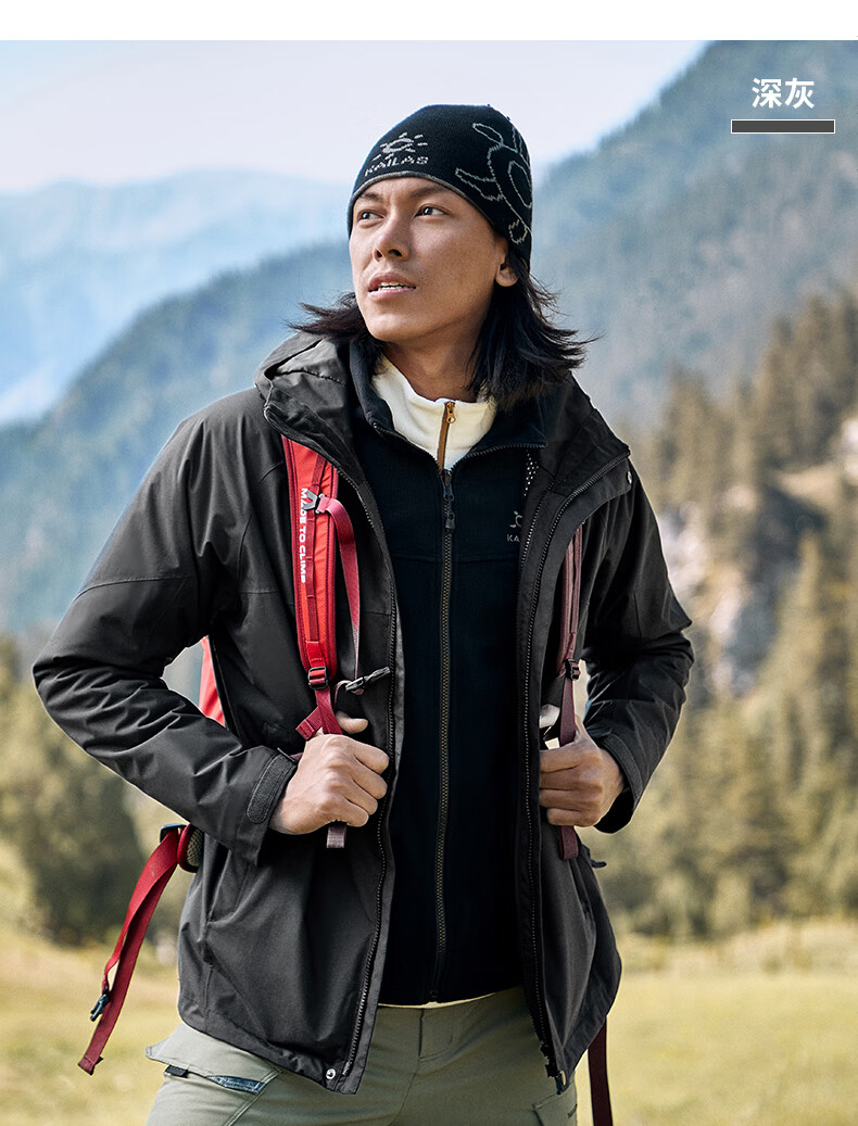 商品名称:凯乐石 户外防寒保暖冲锋衣男三合一可拆登山服防暴雨加厚防风外套KG110286 深灰 XXL