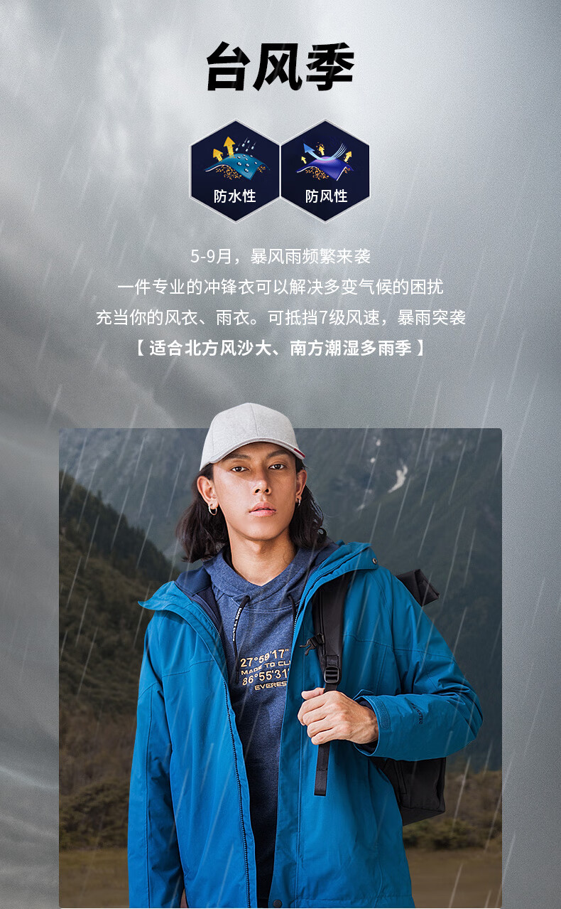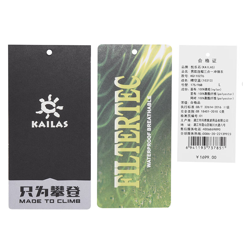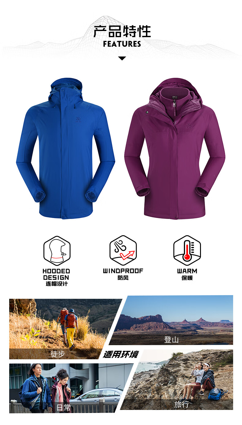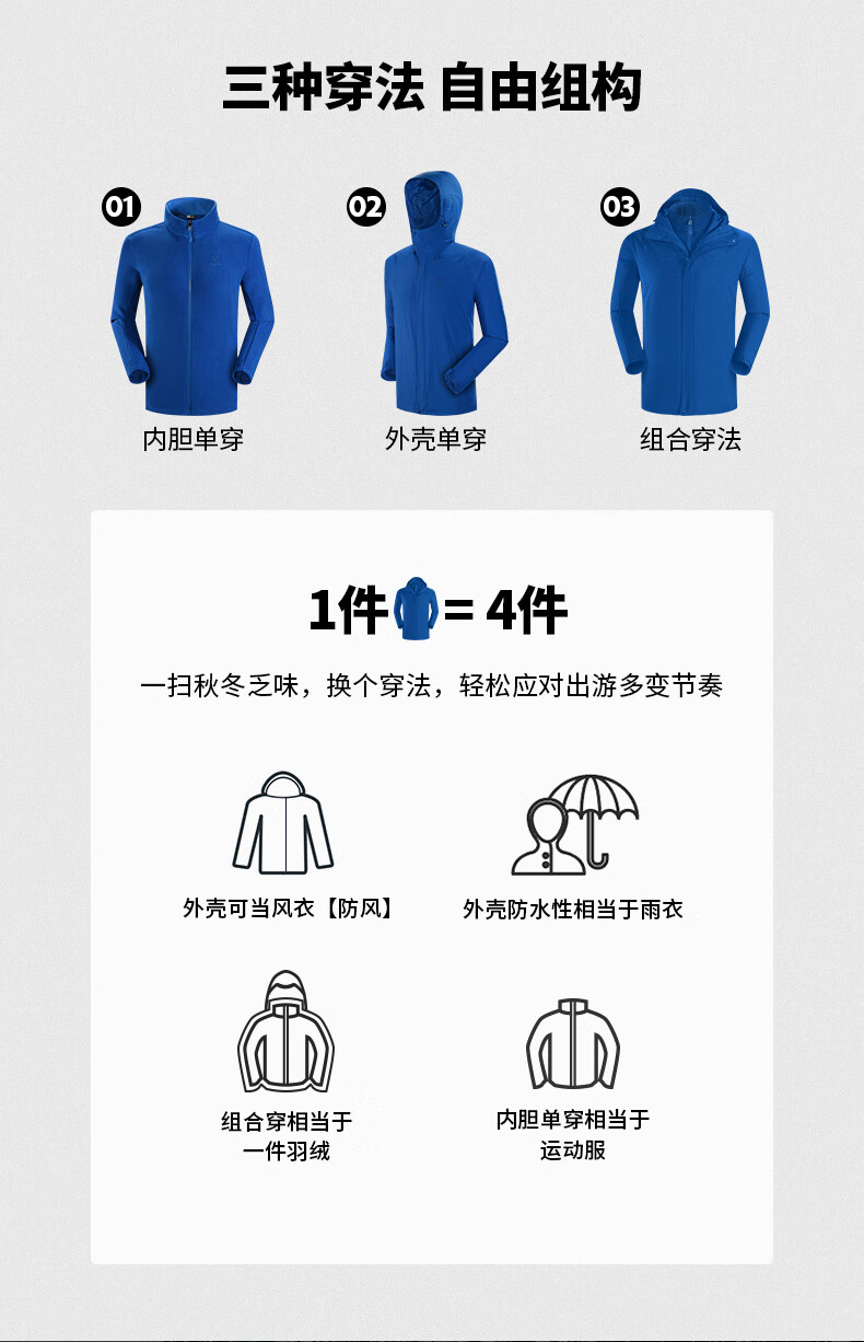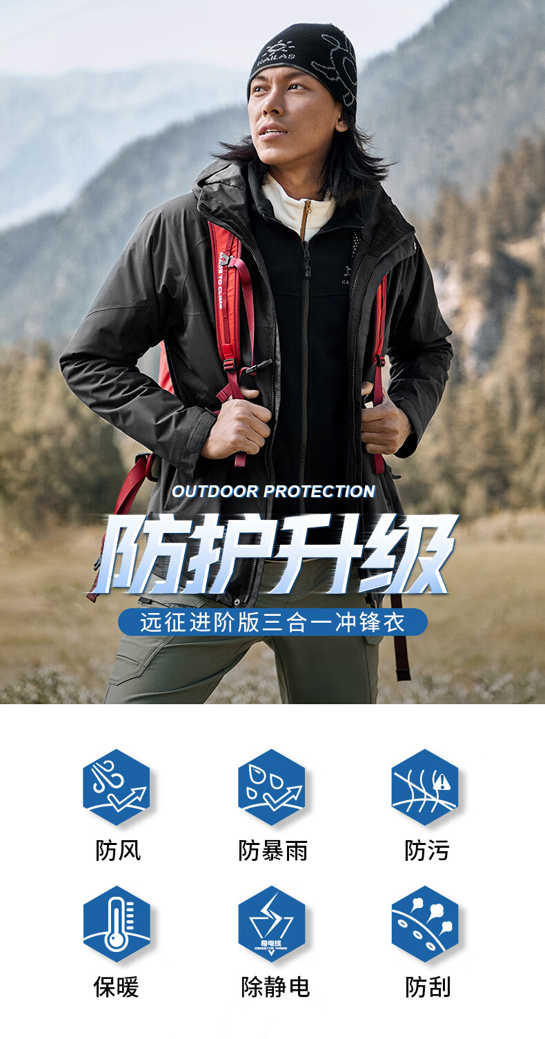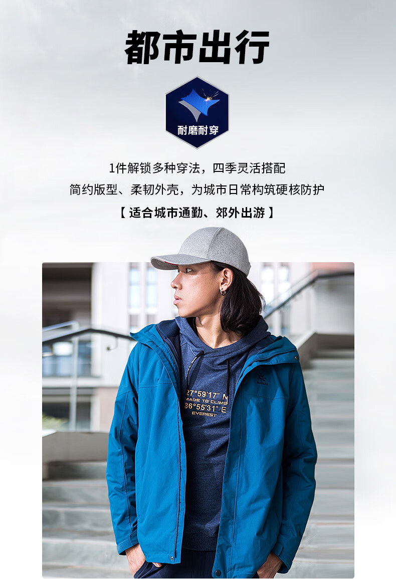 商品名称:凯乐石 户外防寒保暖冲锋衣男三合一可拆登山服防暴雨加厚防风外套KG110286 深灰 XXL