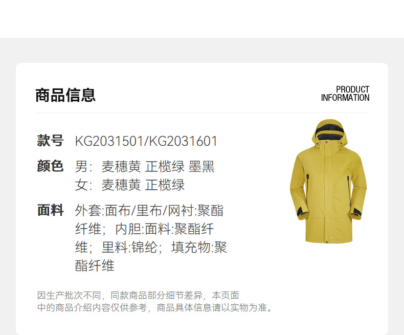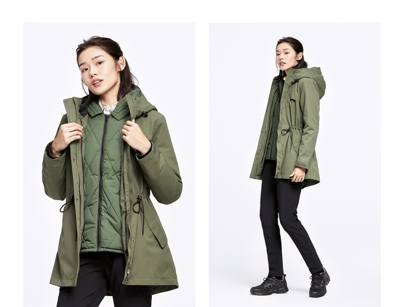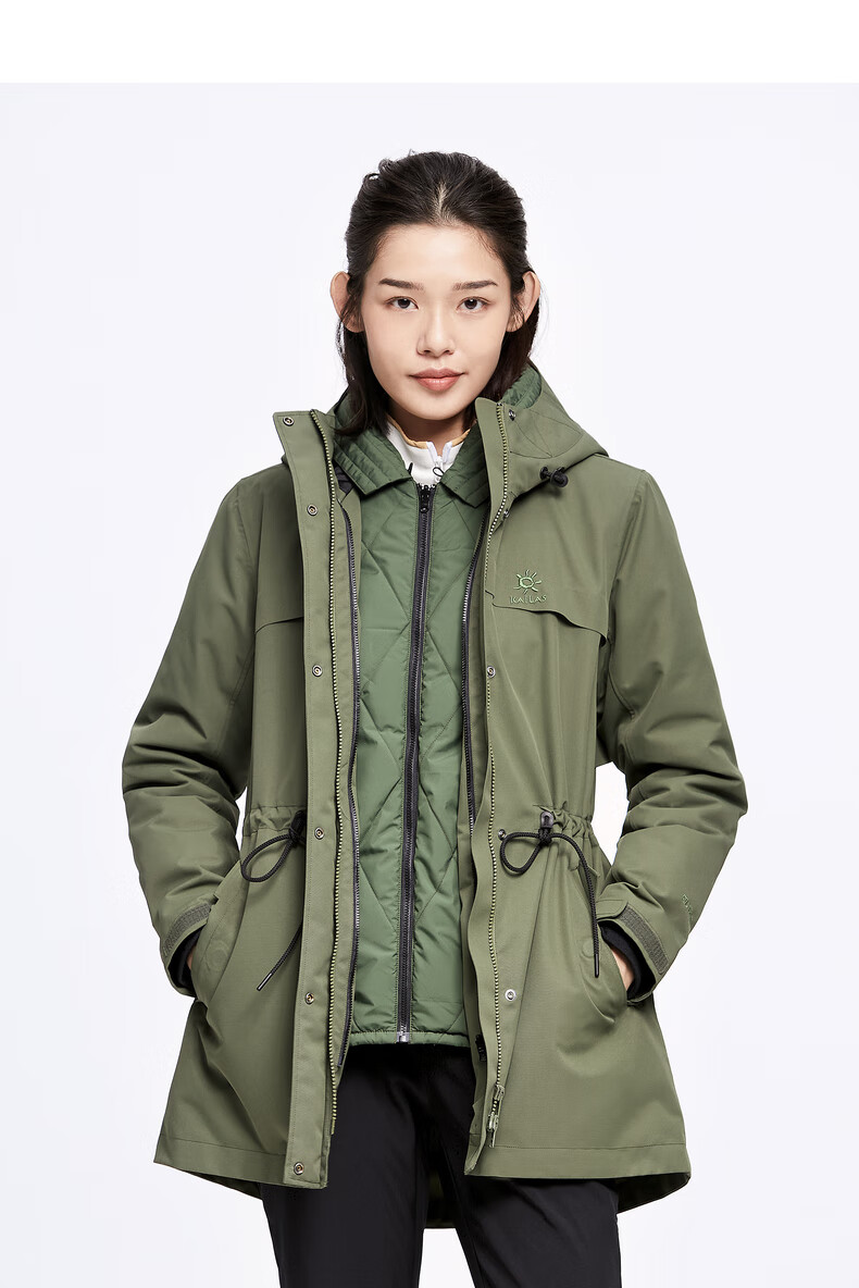 商品名称:凯乐石 夹棉防寒冲锋衣女户外休闲防风衣加厚棉三合一冲锋衣KG2031601 正榄绿(S-XL码可选 下单备注)单位:件